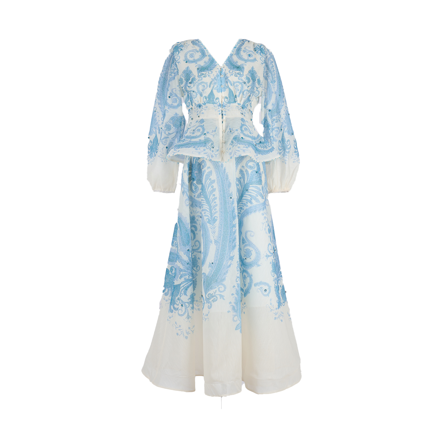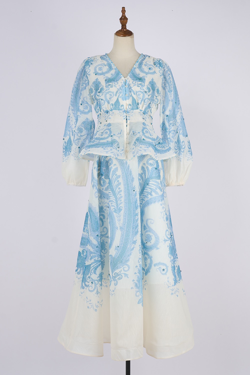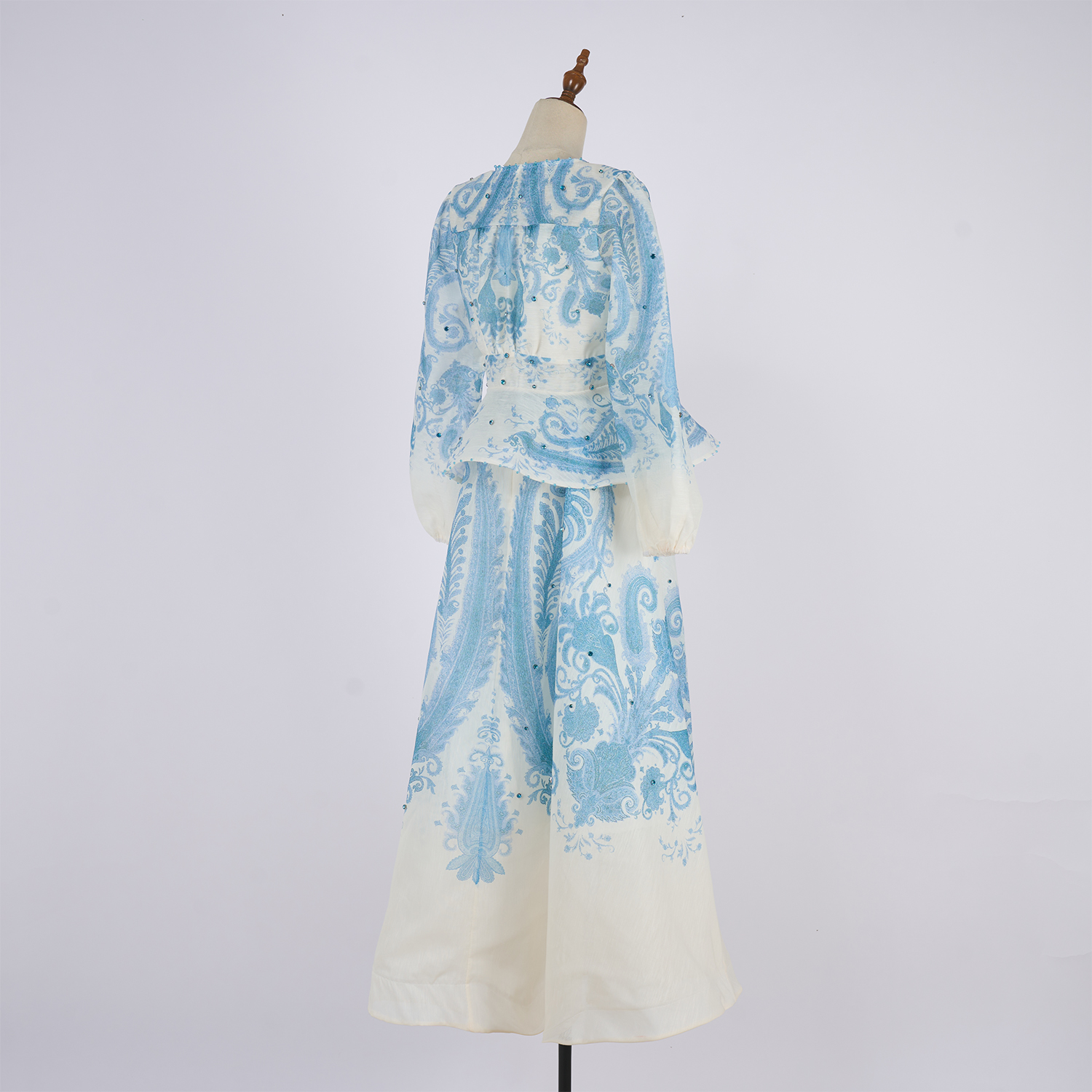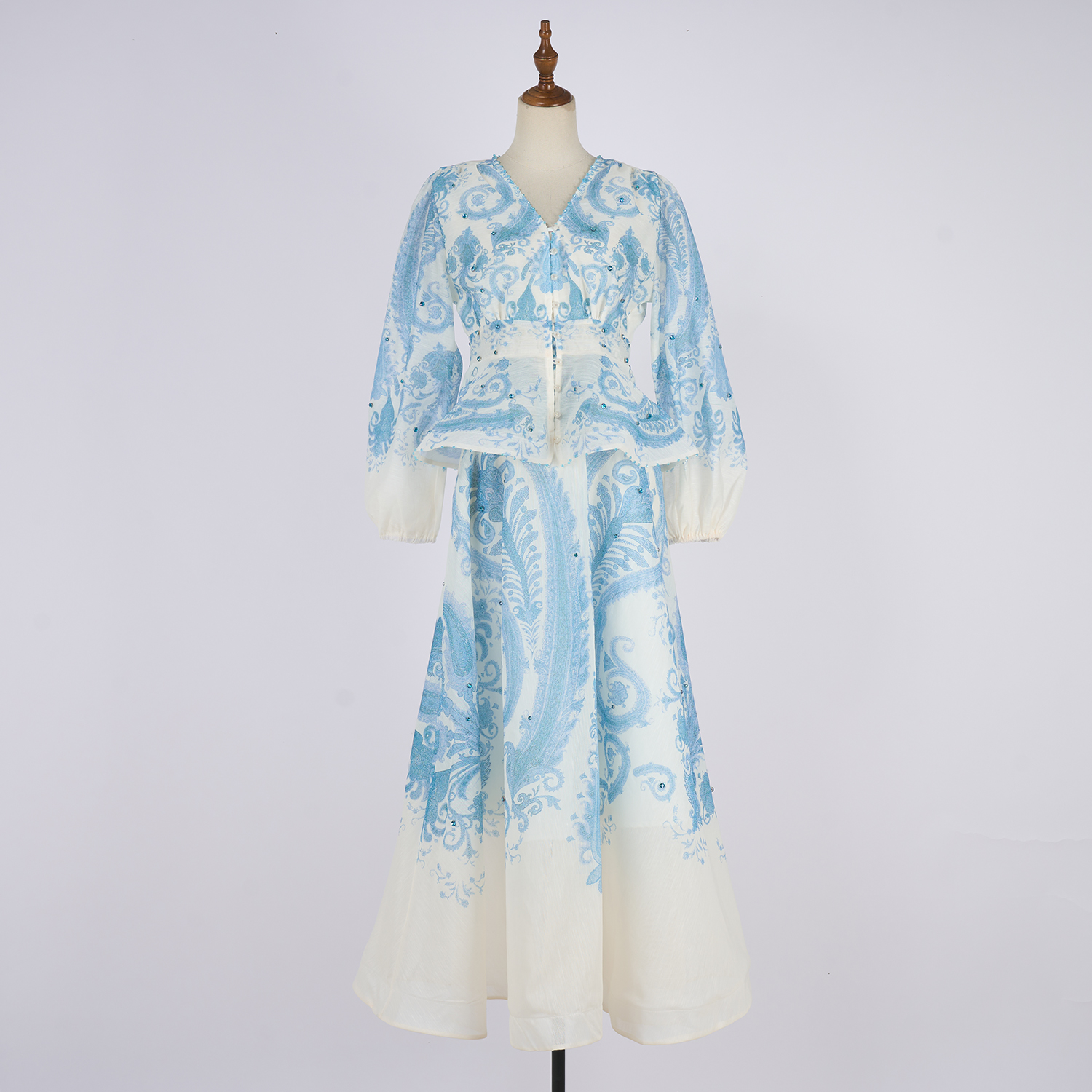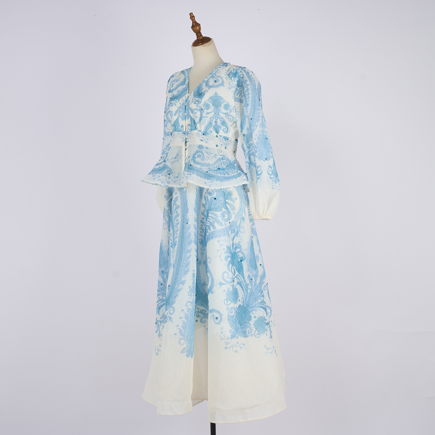 Real shooting of 2025 vacation style new Tencel hemp stand collar patterned button design long suit dress