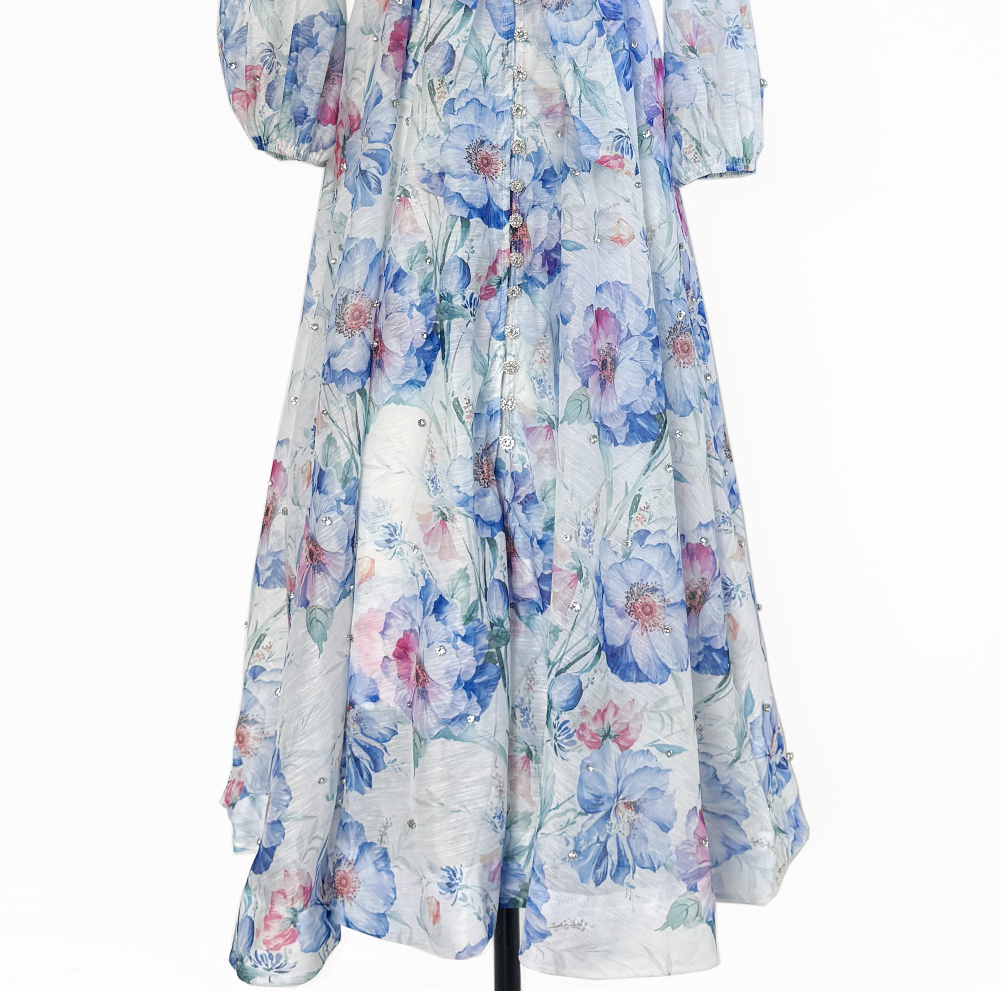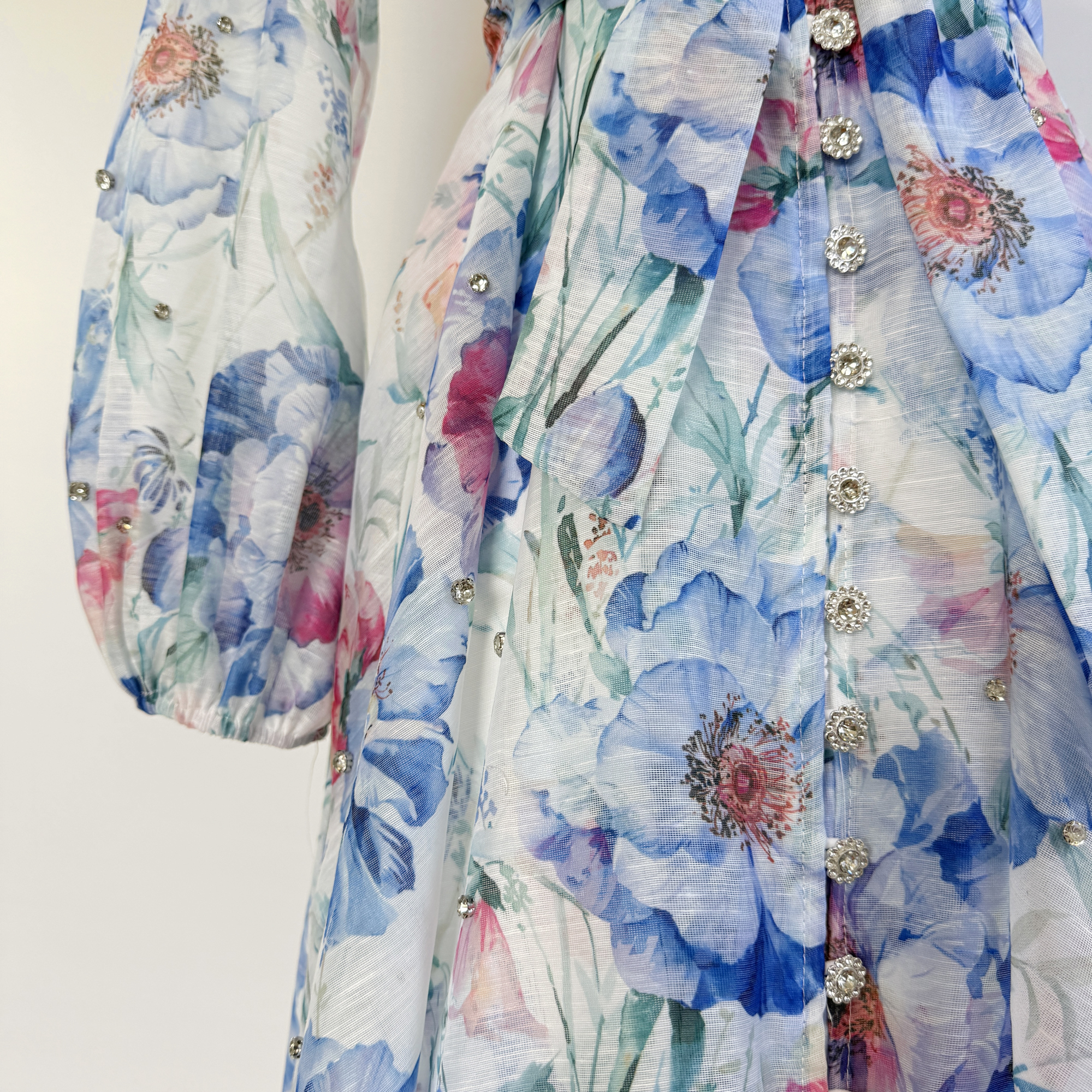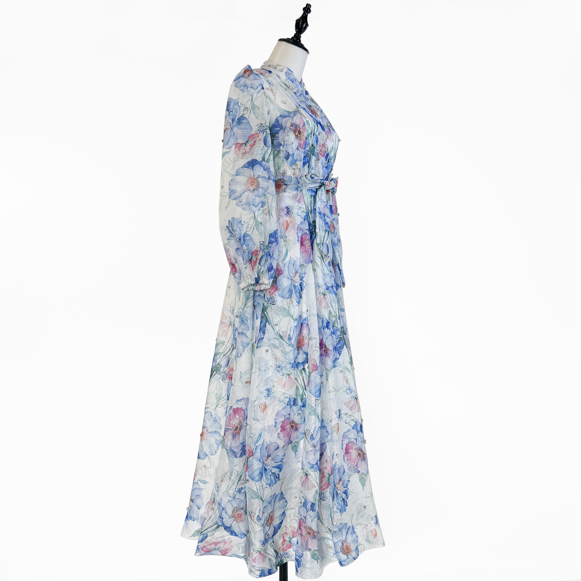 Real time shooting of European and American light luxury high-end custom-made new heavy industry nail drill blingbling single breasted large swing dress long