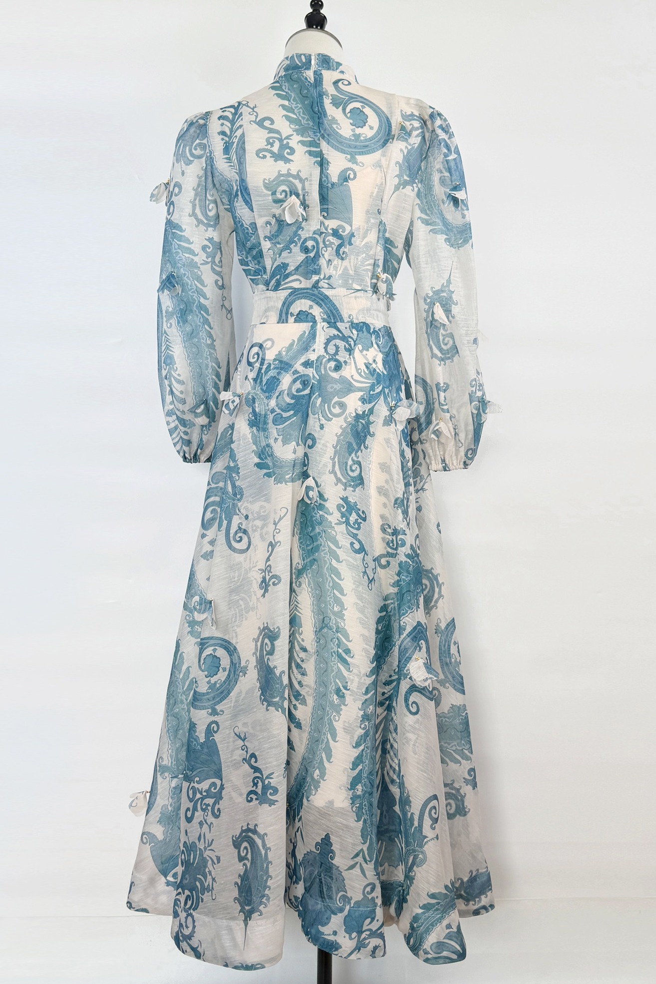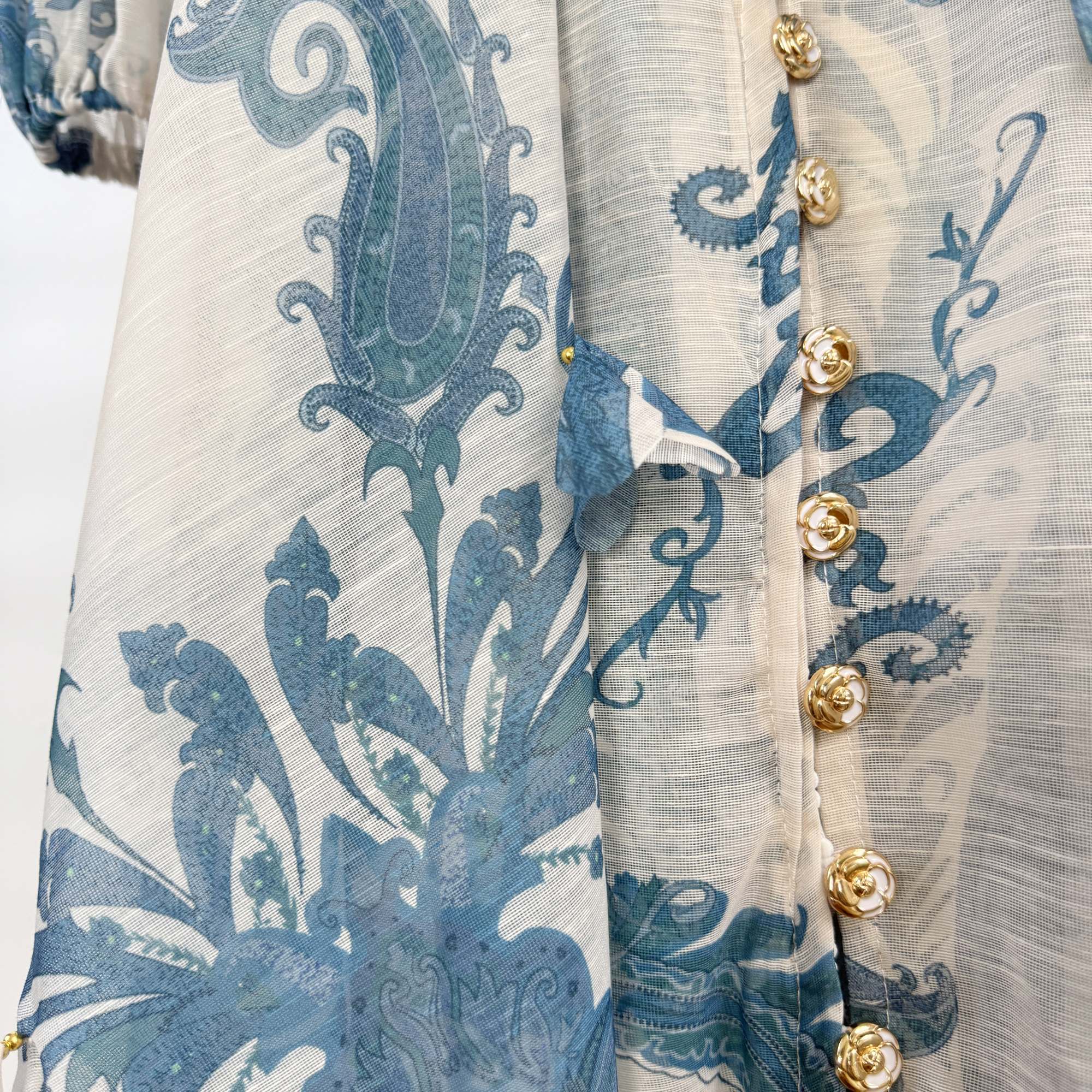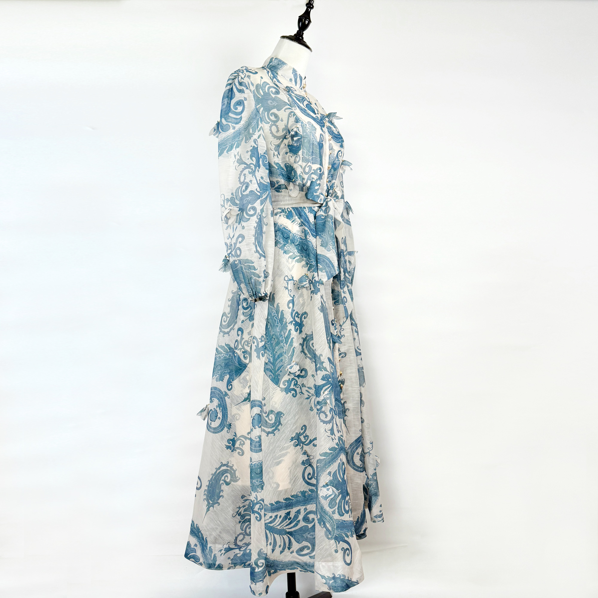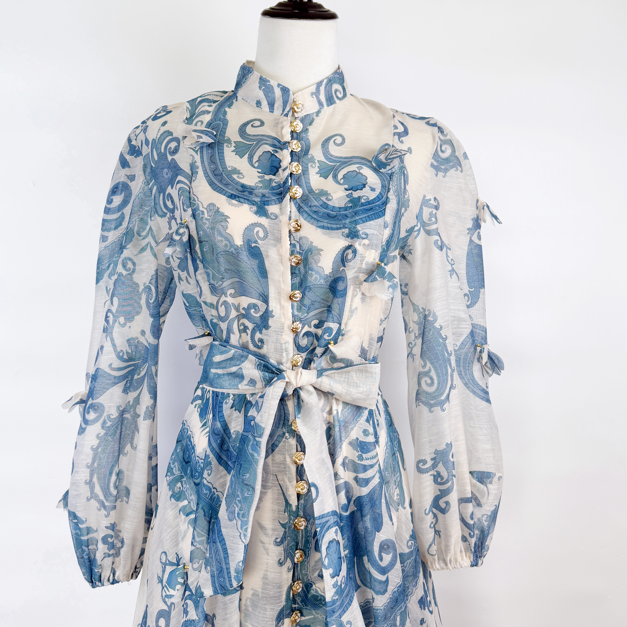 Real shot Australian printed flower pendant patterned button long sleeved long sleeved dress with a large skirt, party skirt
