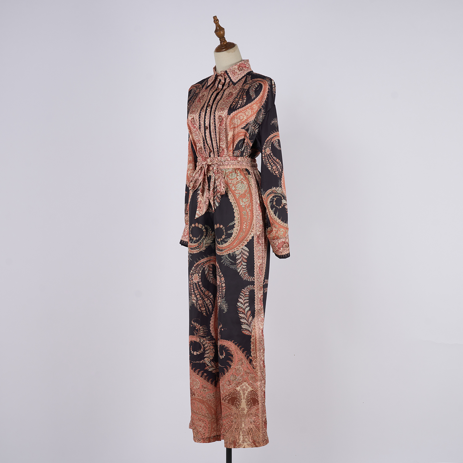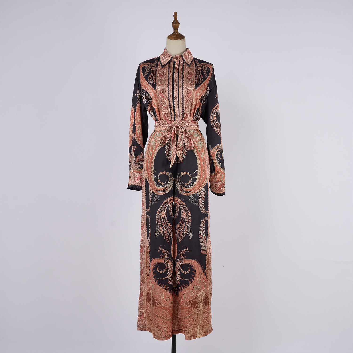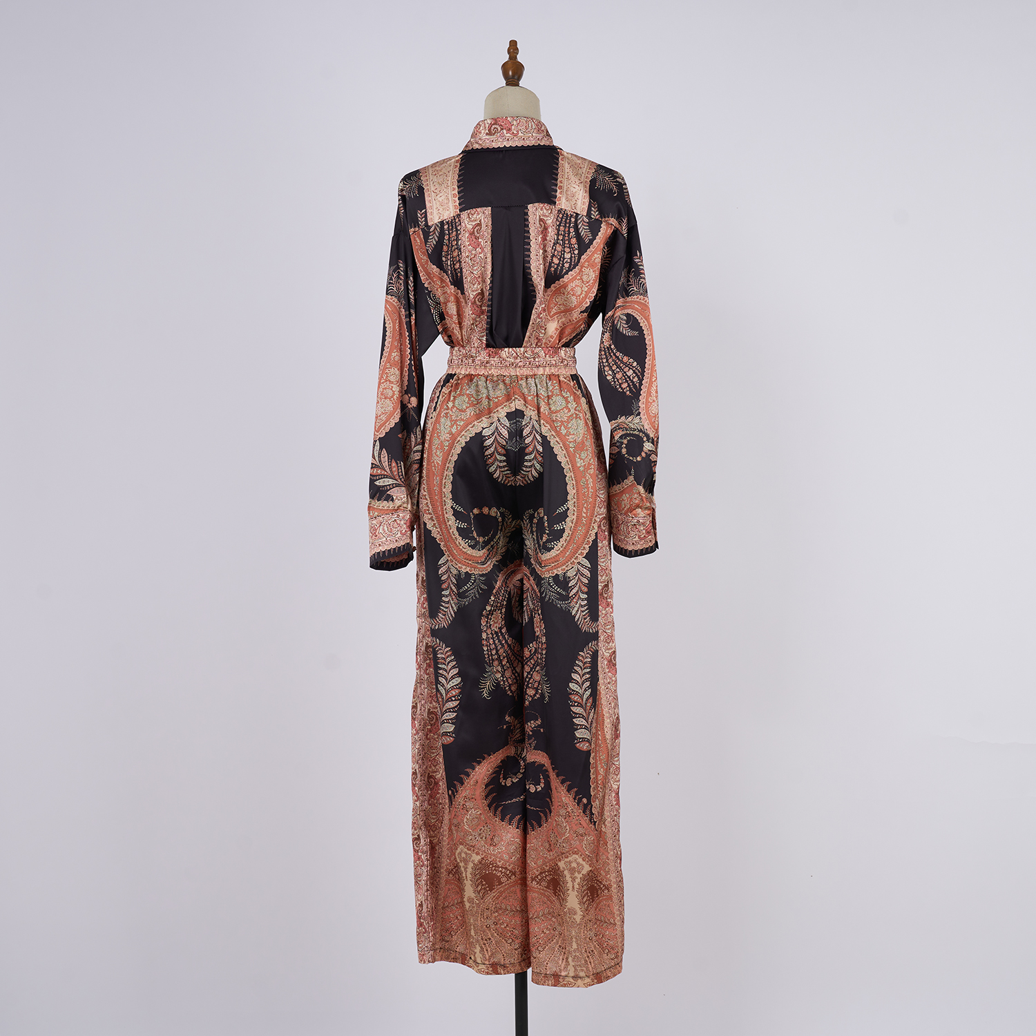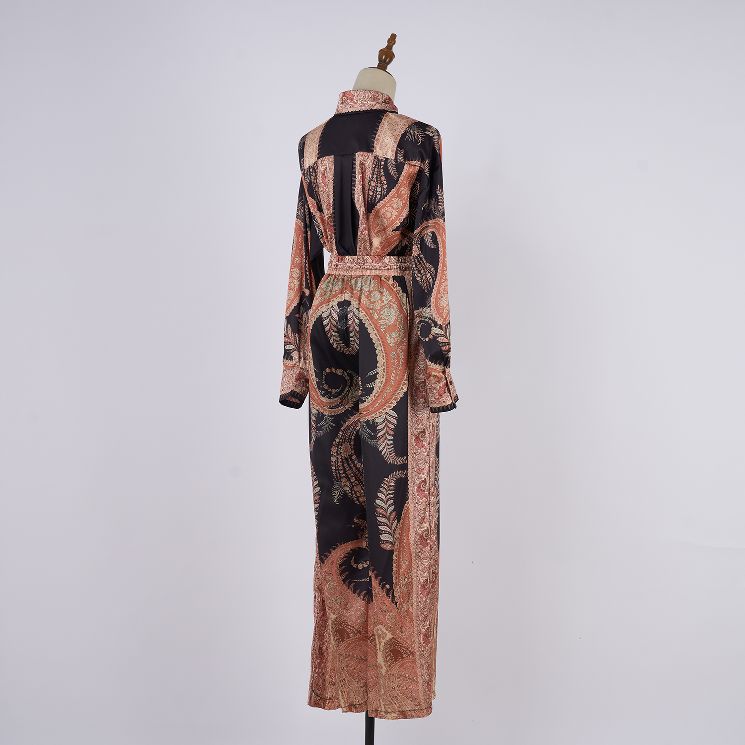 Real shooting of 2025 Australian new tropical style printed autumn and winter straight leg shirt casual pants set