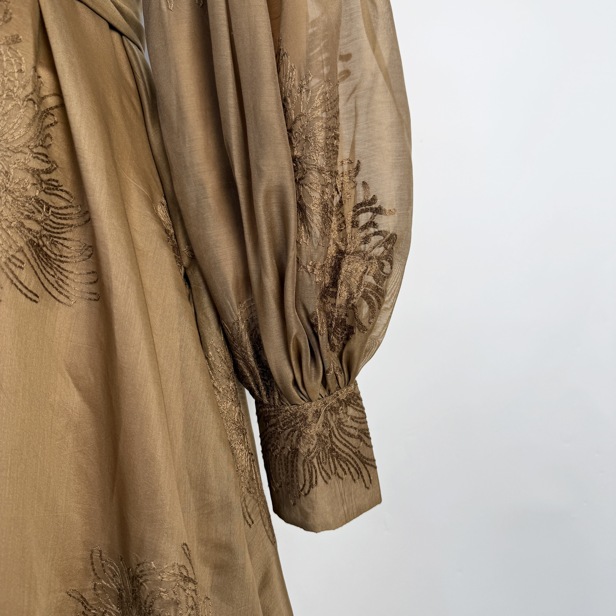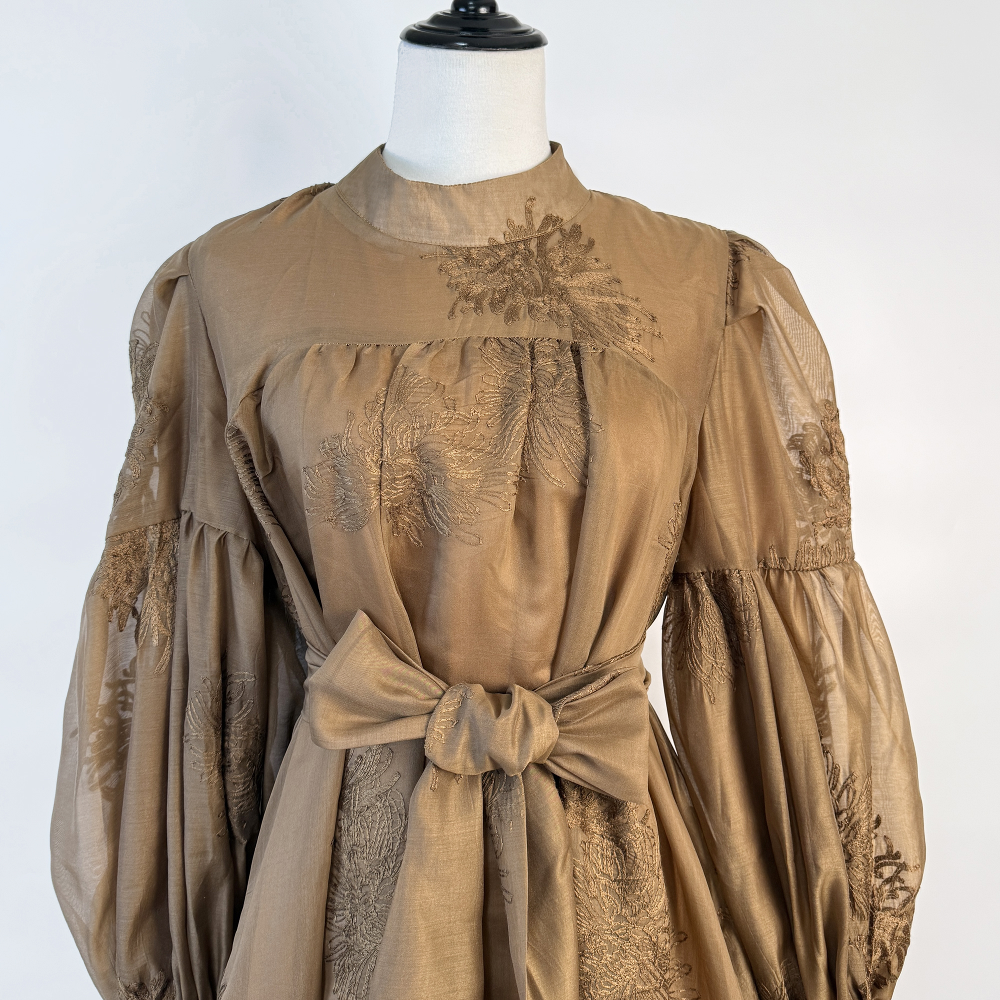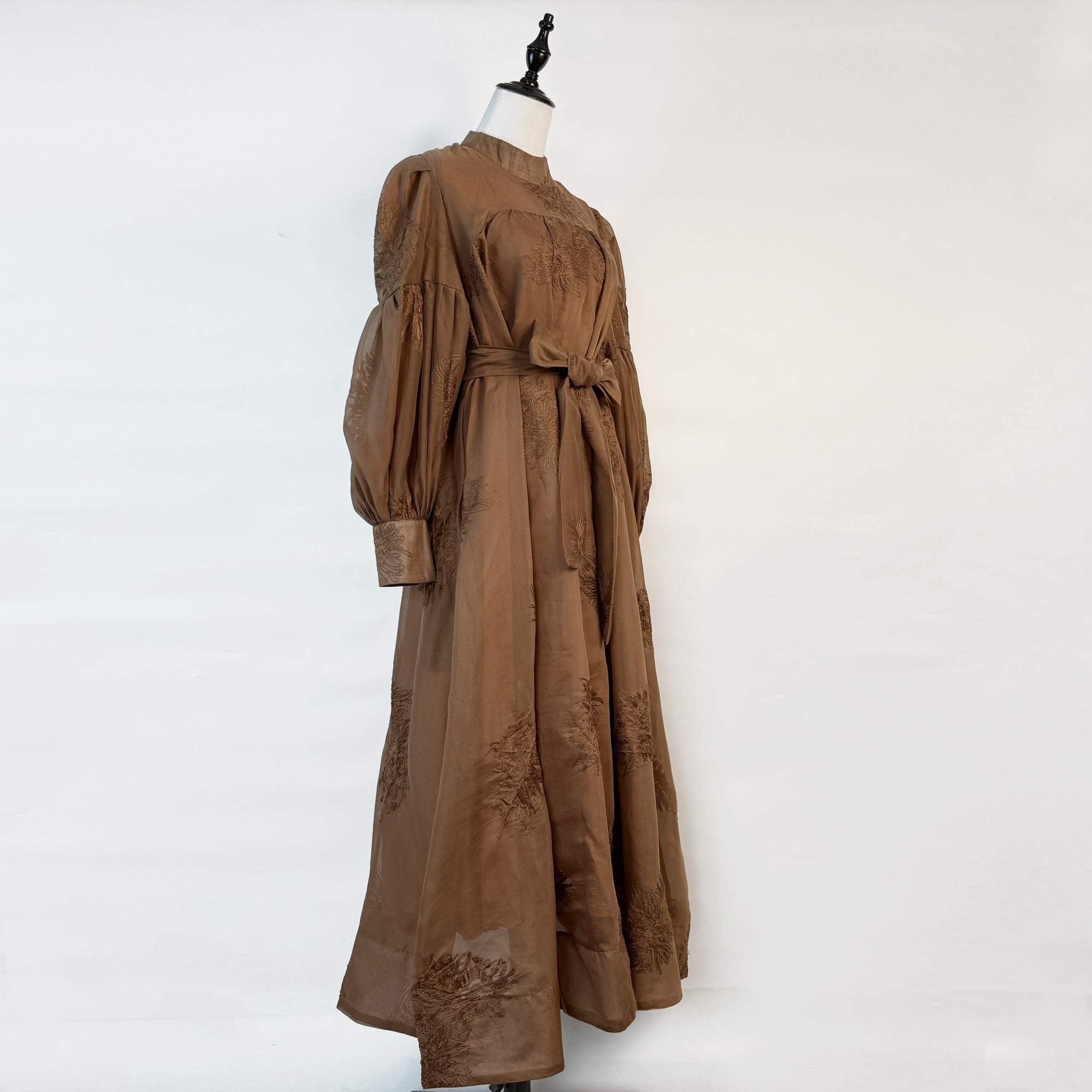 Real shot French embroidery niche design temperament dress loose and exquisite embroidered lantern sleeves stand up collar long dress
