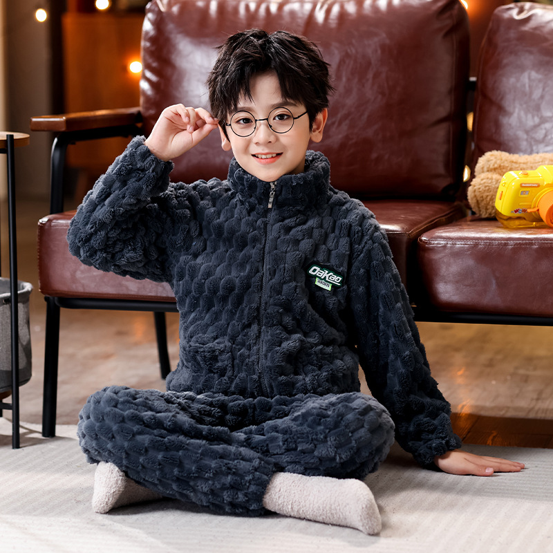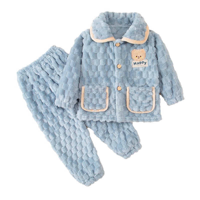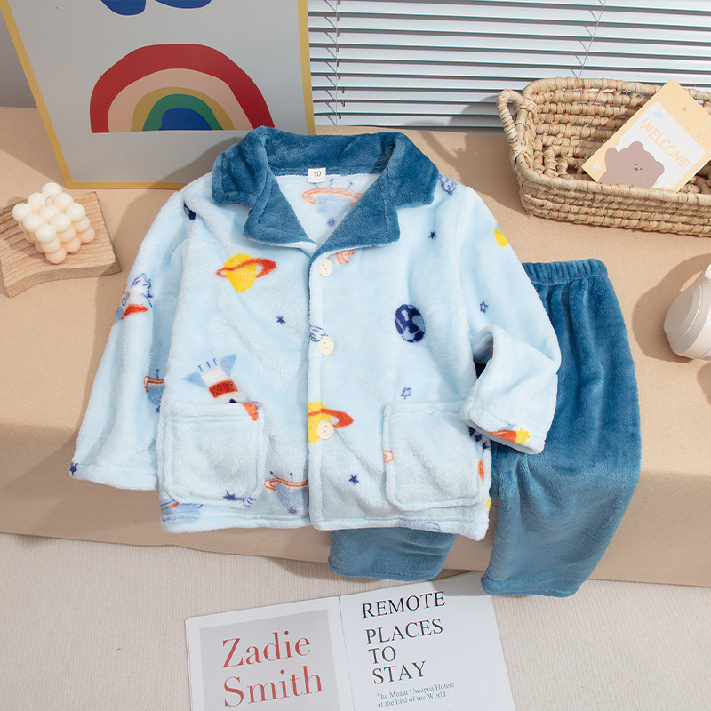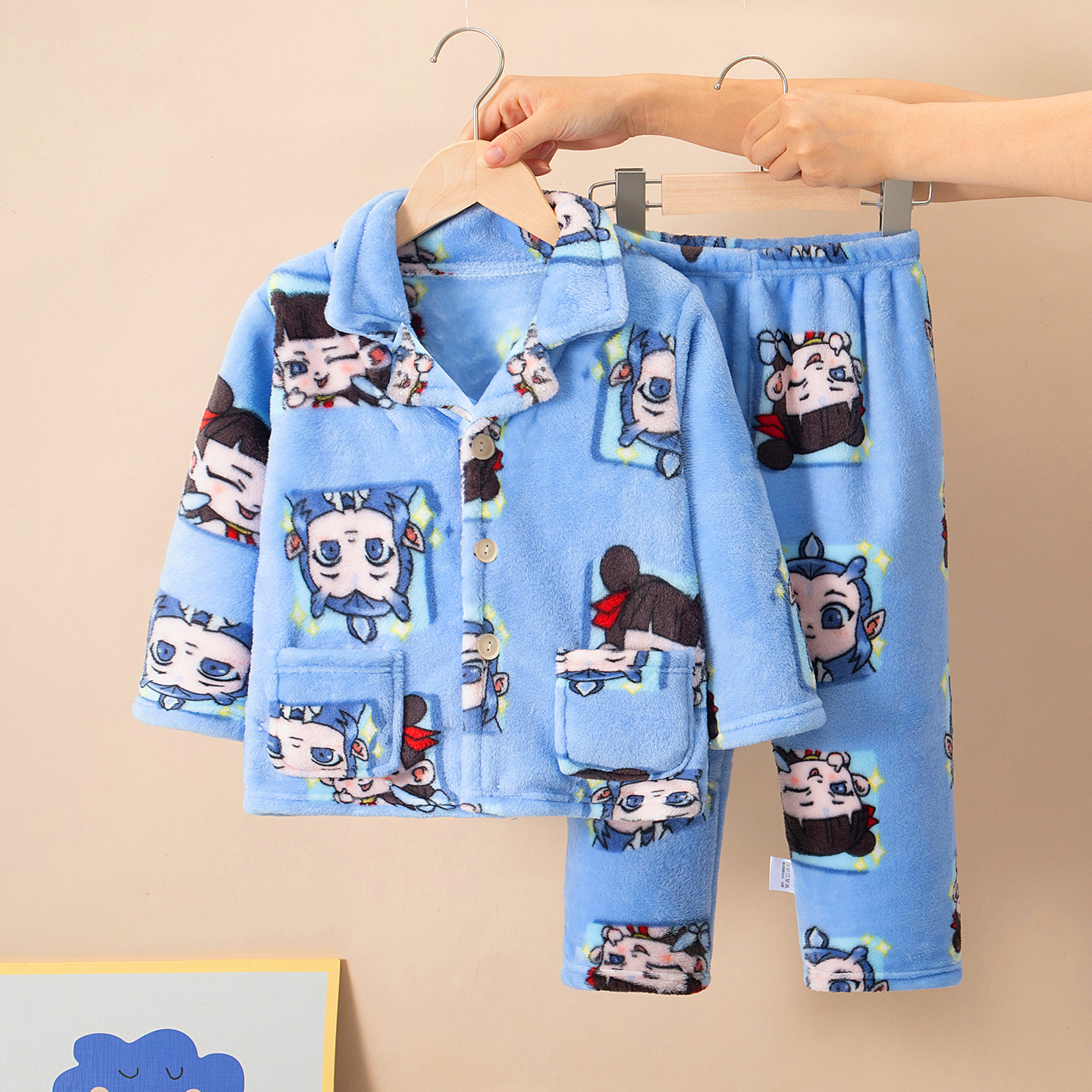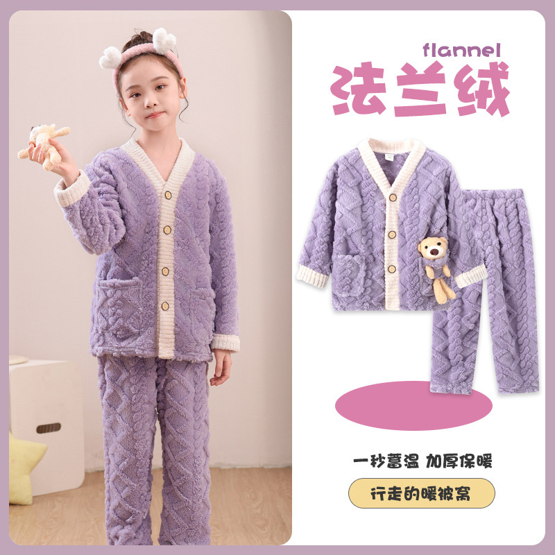 Autumn and winter children's flannel pajamas, boys and girls' thick coral fleece, girls' baby home clothes, parent-child set