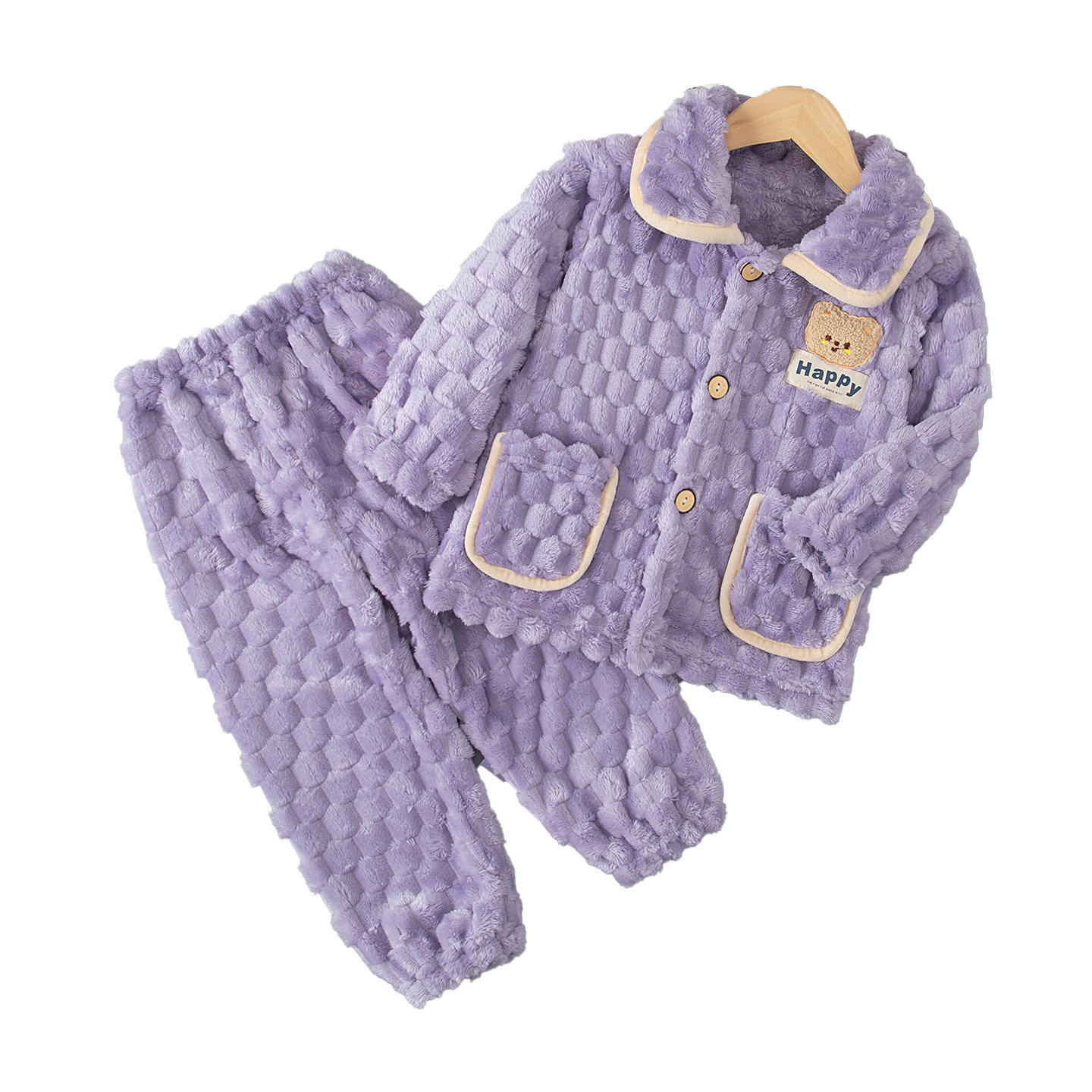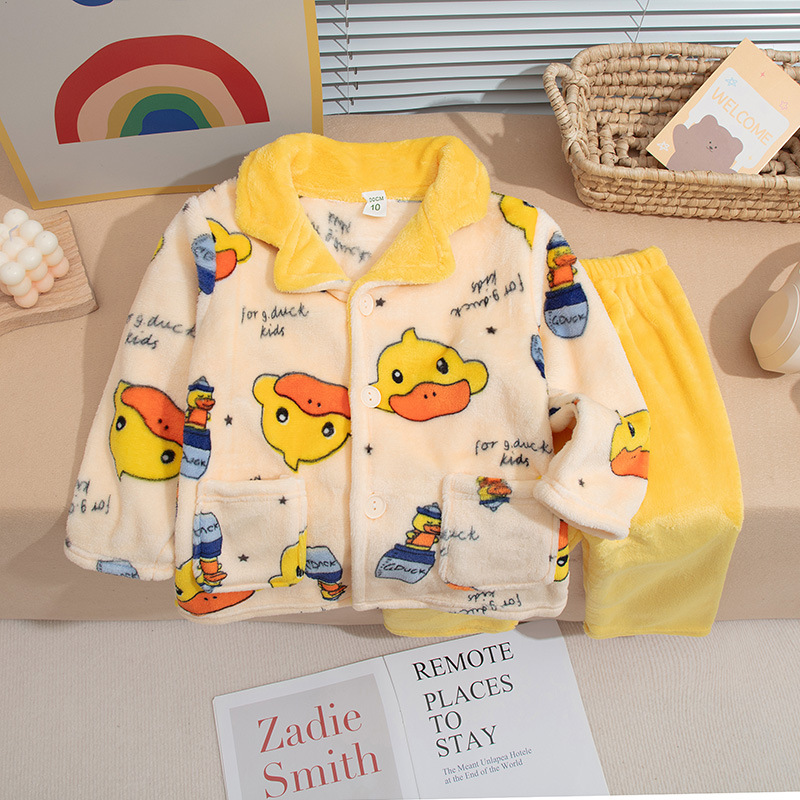 Autumn and winter girls' pajamas with thick flannel, boys' baby boys' warm coral fleece children's home suit set