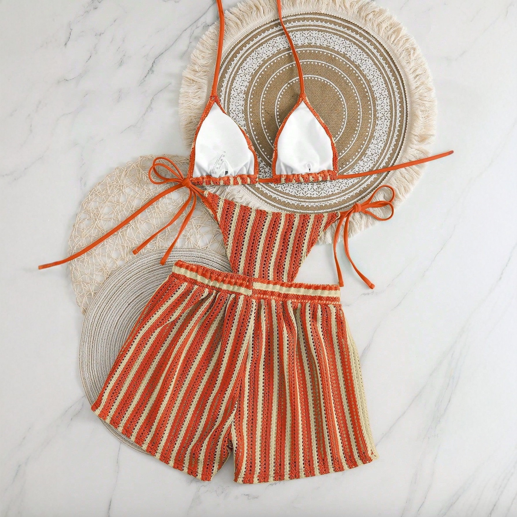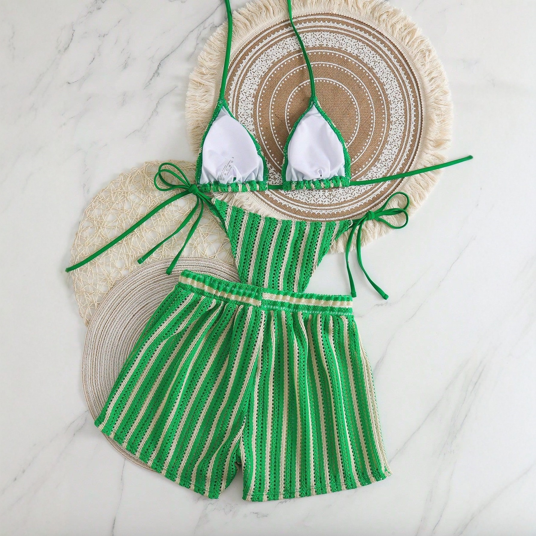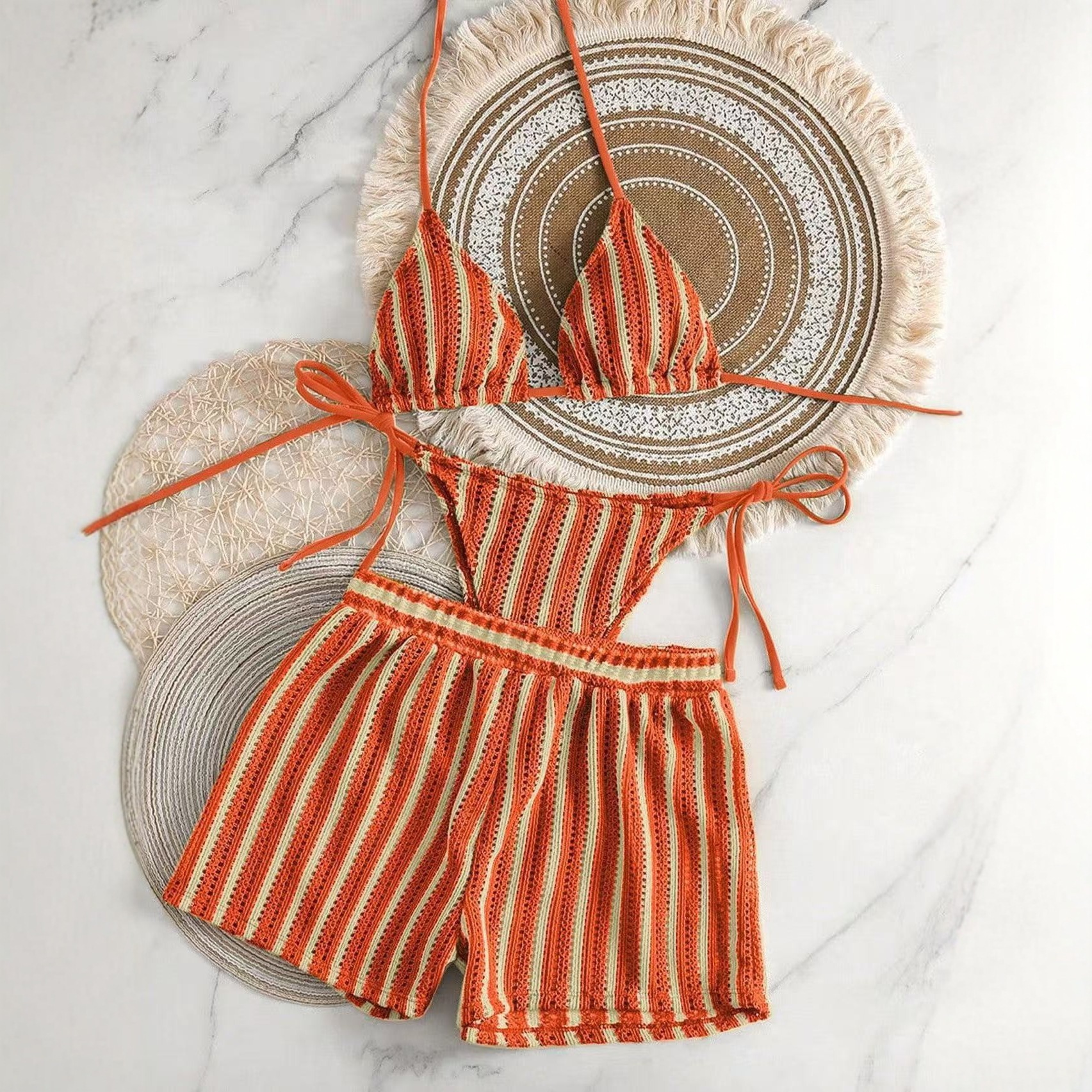 2025 New Towel Cloth Hanging Neck Strap Bikini Swimsuit Summer Beach Vacation Women's Wholesale from European and American Manufacturers