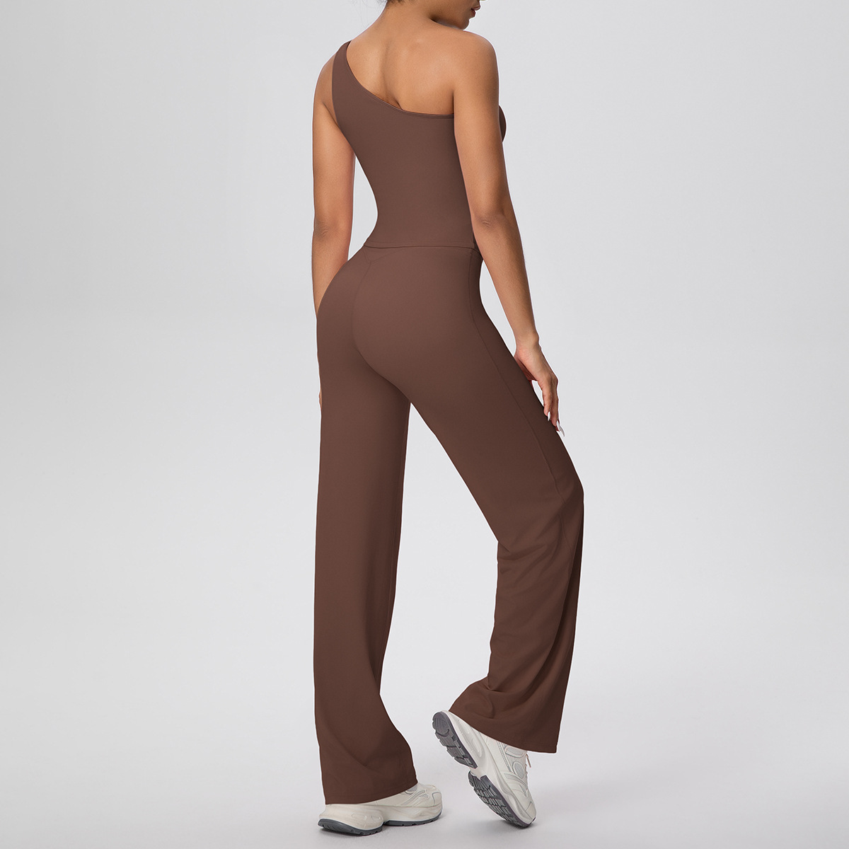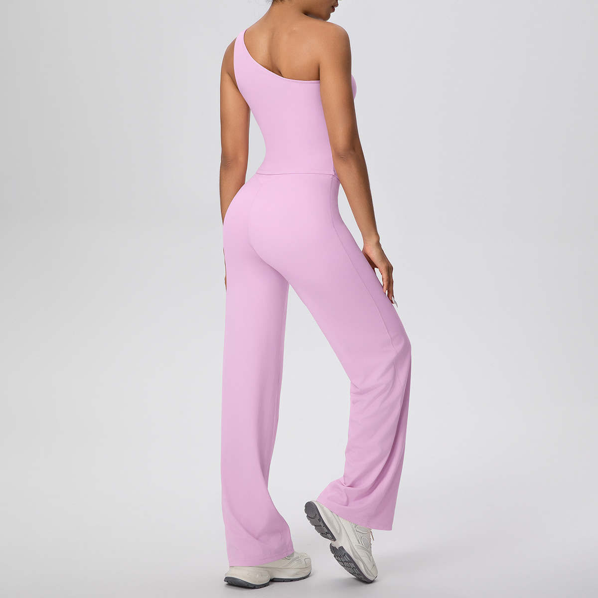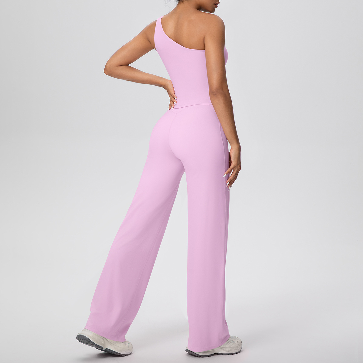 European and American cloud style slanted shoulder waist yoga vest, yoga pants, running loose straight leg pants, fitness yoga suit set