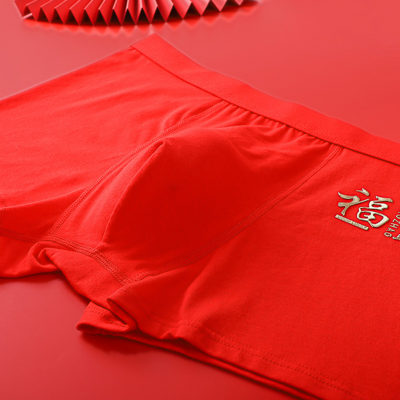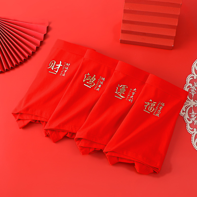 Big red mid waist men's boxer underwear in the Year of the the Year of the Loong, pure cotton, breathable and comfortable, wedding festive boxer pants