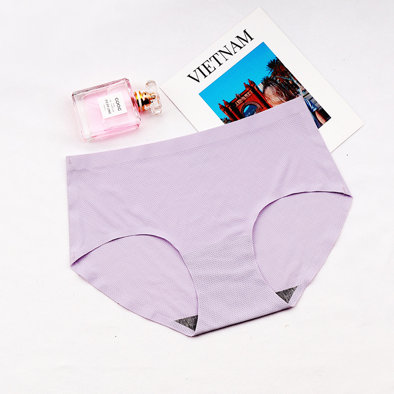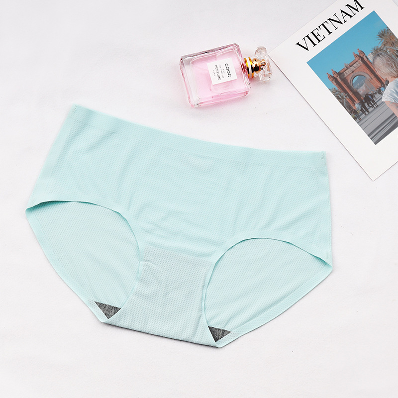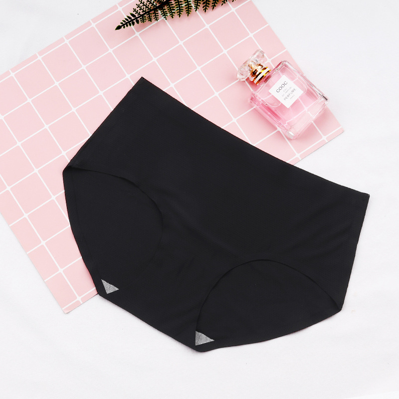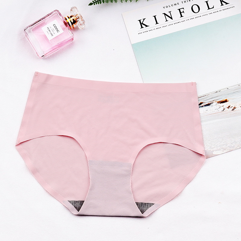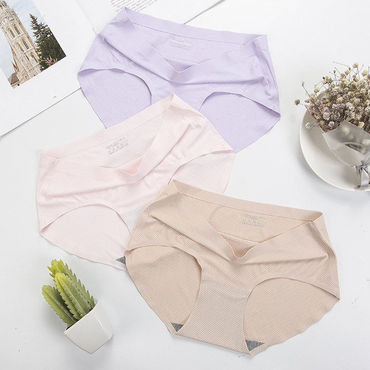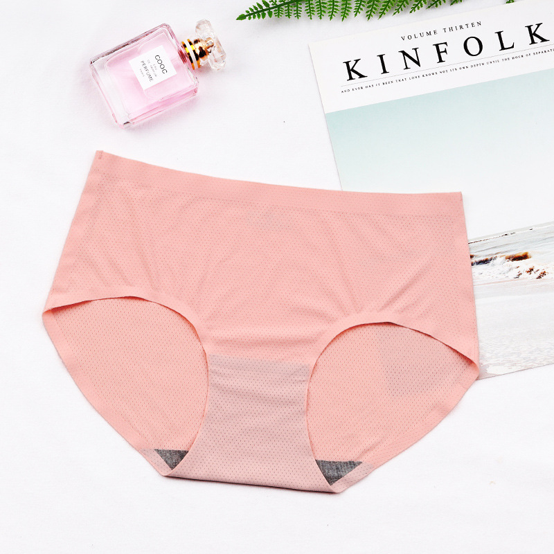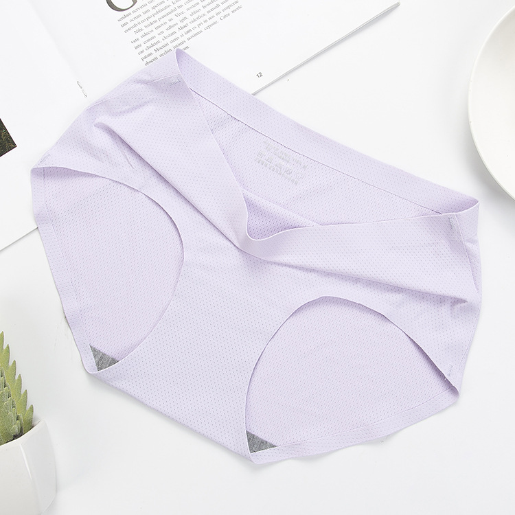 Breathable mesh ice silk seamless underwear for women, solid color, mid waist, women's triangle underwear, comfortable hip lifting, seamless underwear for women