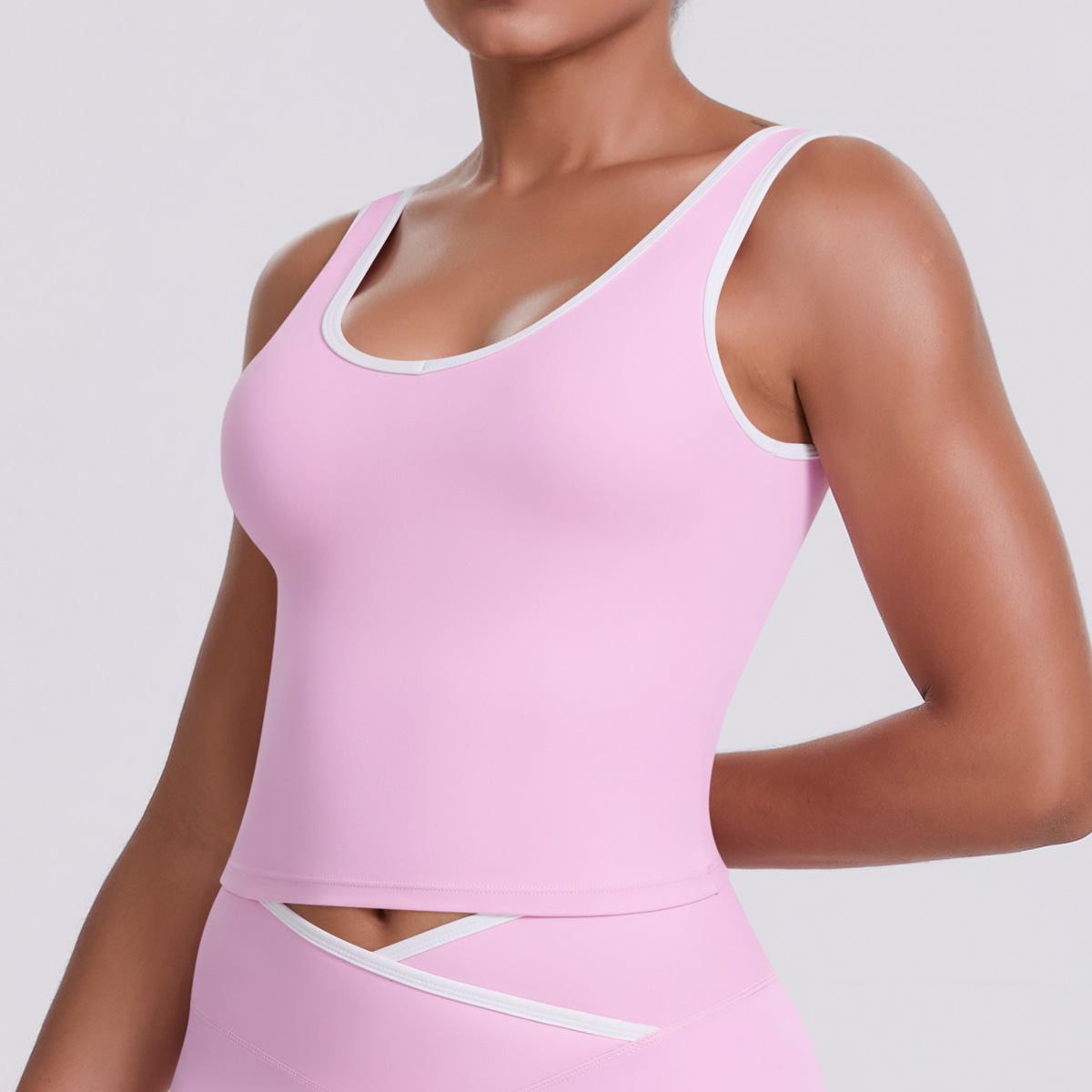 Spot nude tight yoga pants, contrasting vest, sports bra, crossed high waist wide leg pants, women's sports and fitness pants