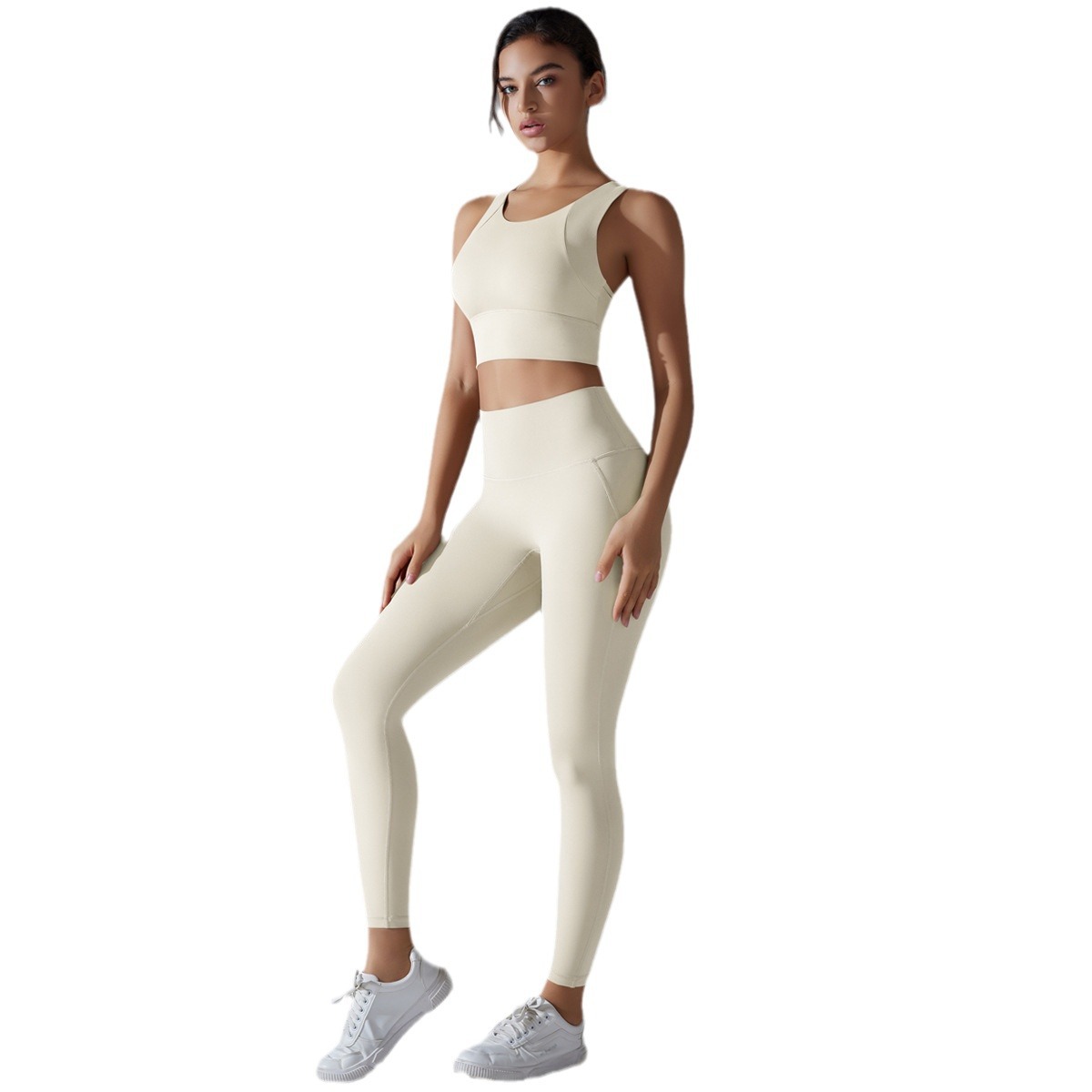 Internet celebrity sexy back, high waist, skin friendly, hip lifting, no underwear, sports bra, pants, running, fitness, yoga set