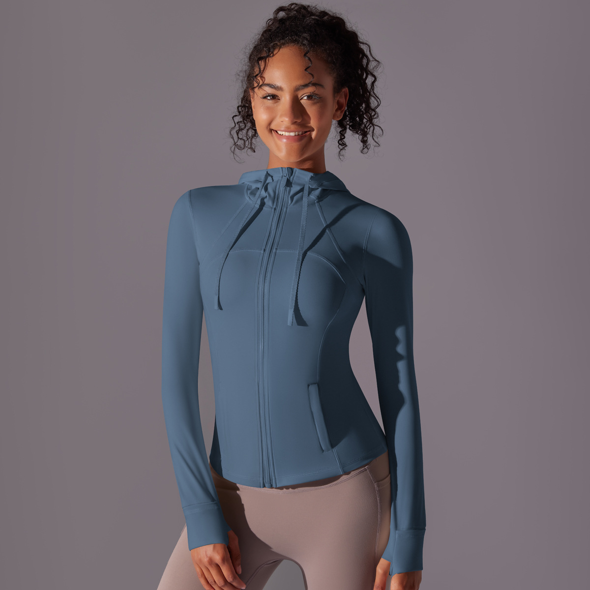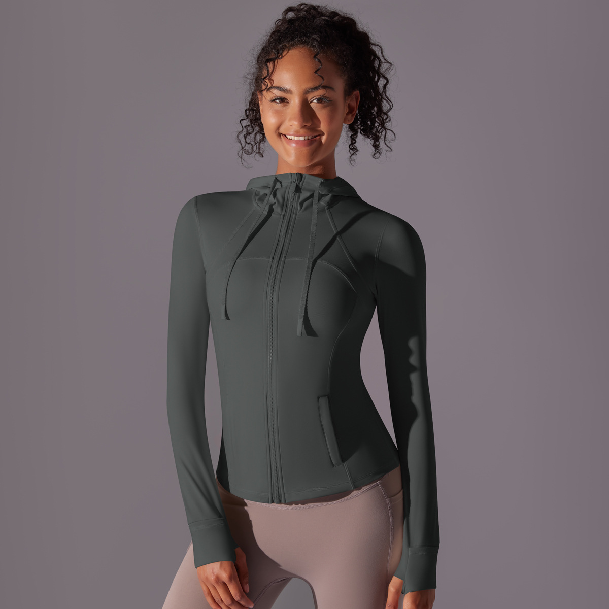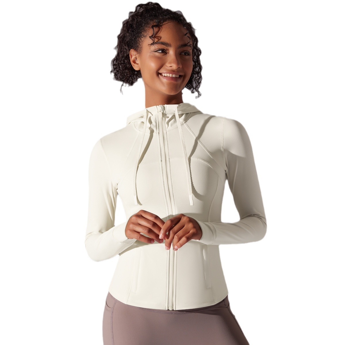 Outdoor sun protection clothes, tight fitting sports running fitness tops, yoga clothes, UV resistant breathable hooded zipper jacket