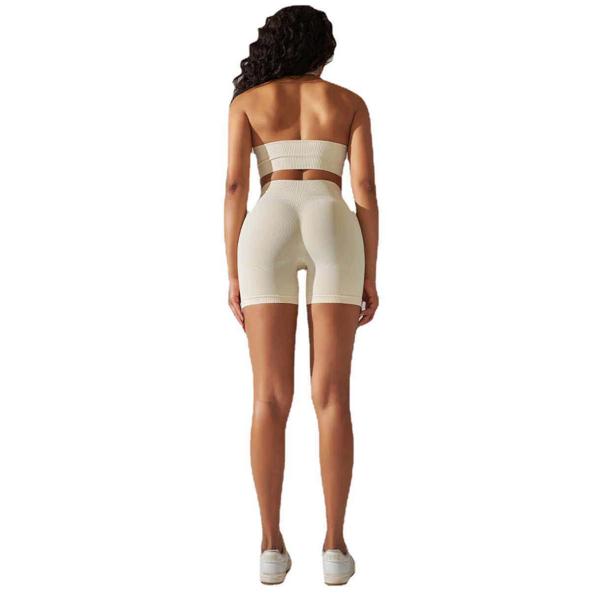 Cross border European and American seamless yoga suit set for women, high waisted and tight fitting sports bra, fitness yoga pants two-piece set