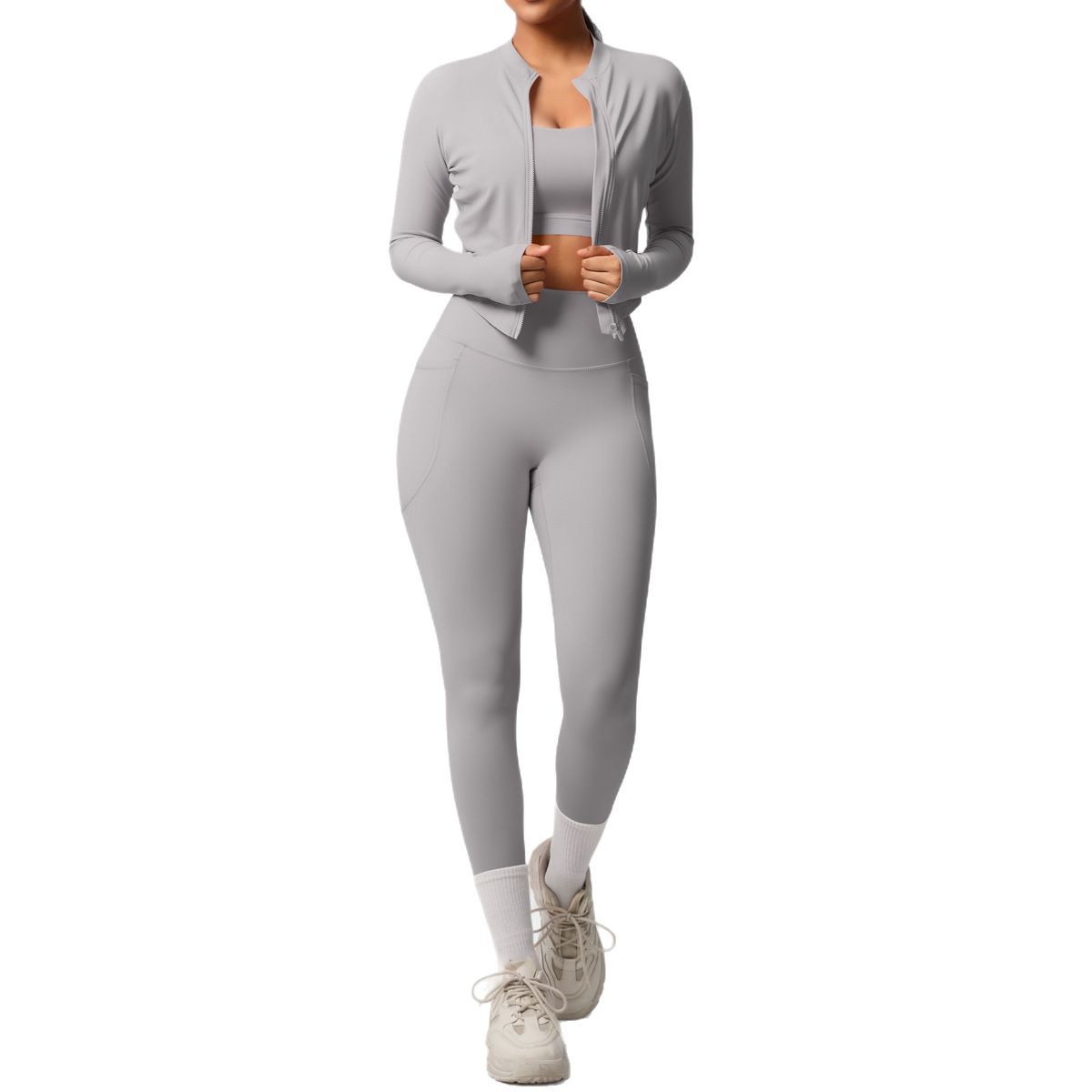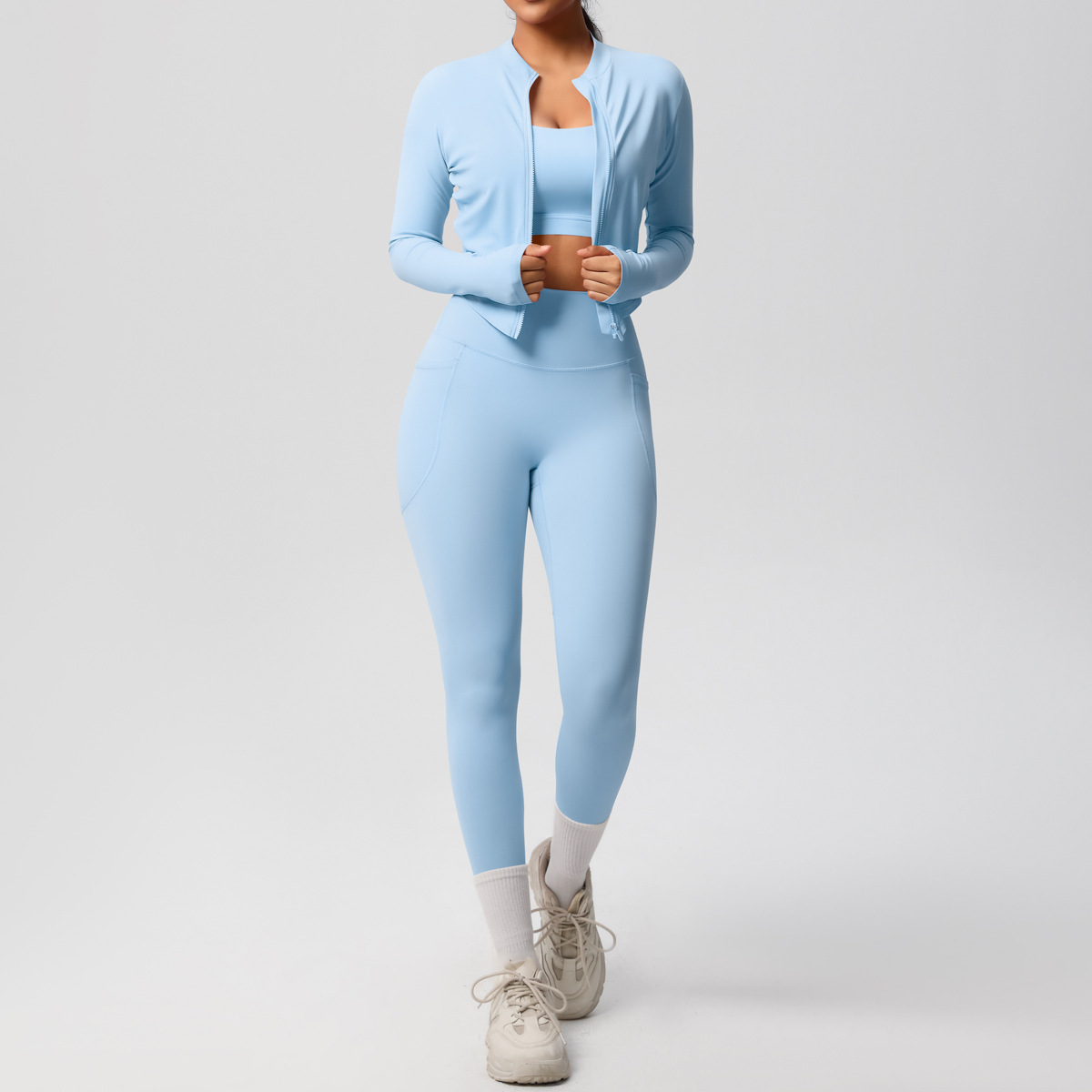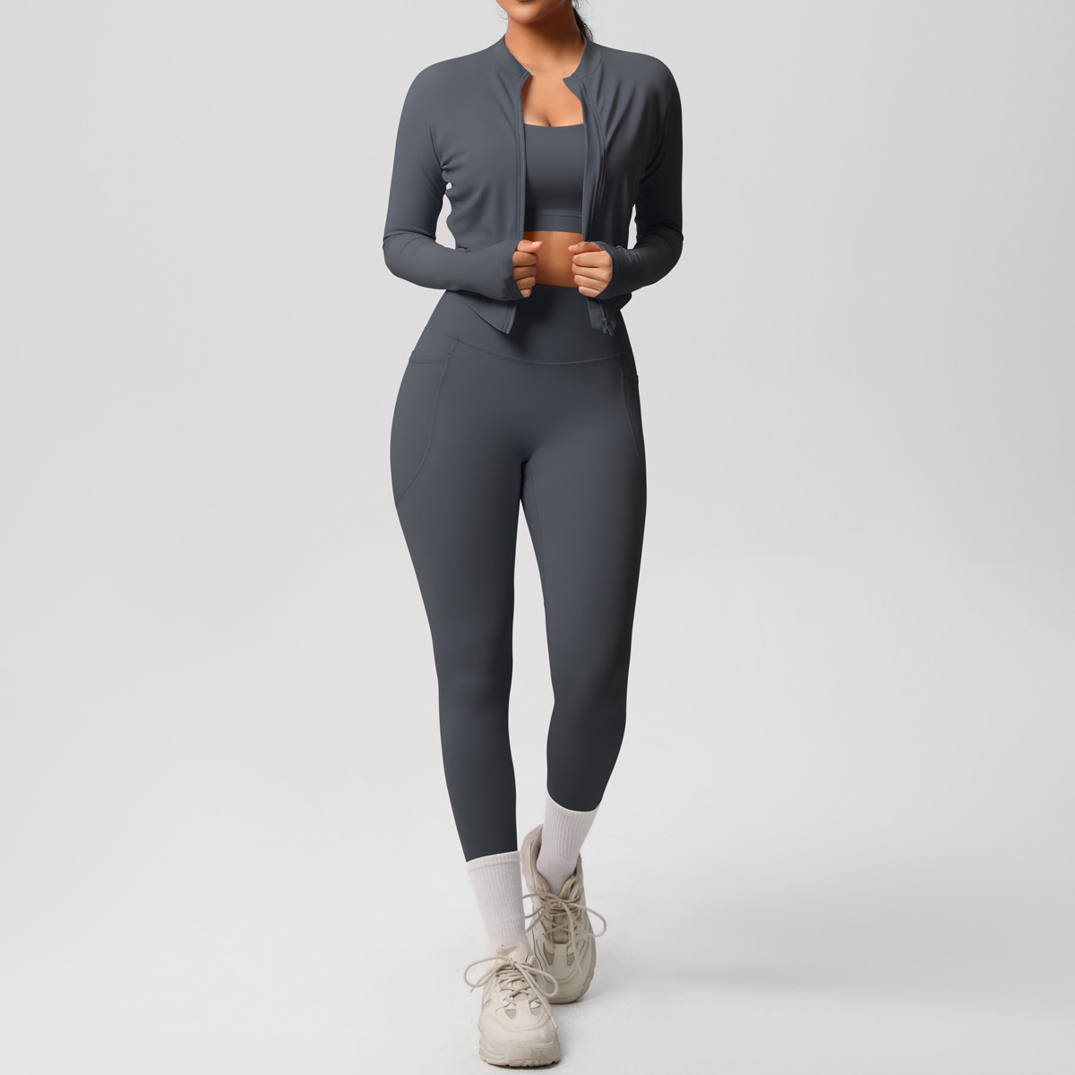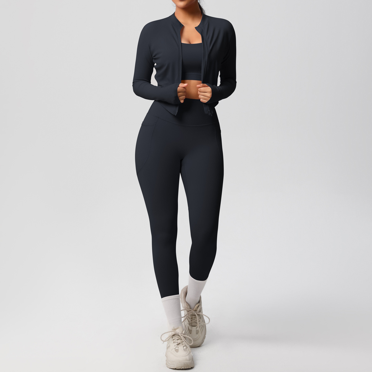 Cross border European and American skin friendly bra sports back pocket yoga pants three piece set running fitness yoga suit set for women