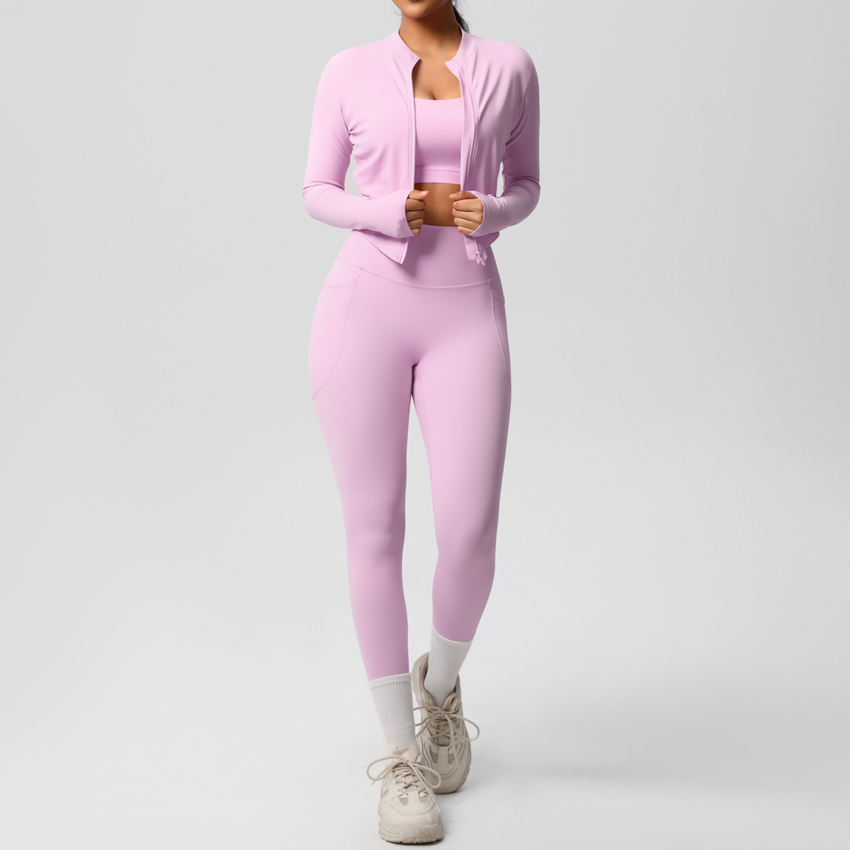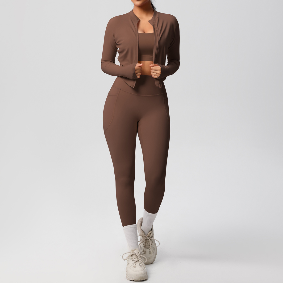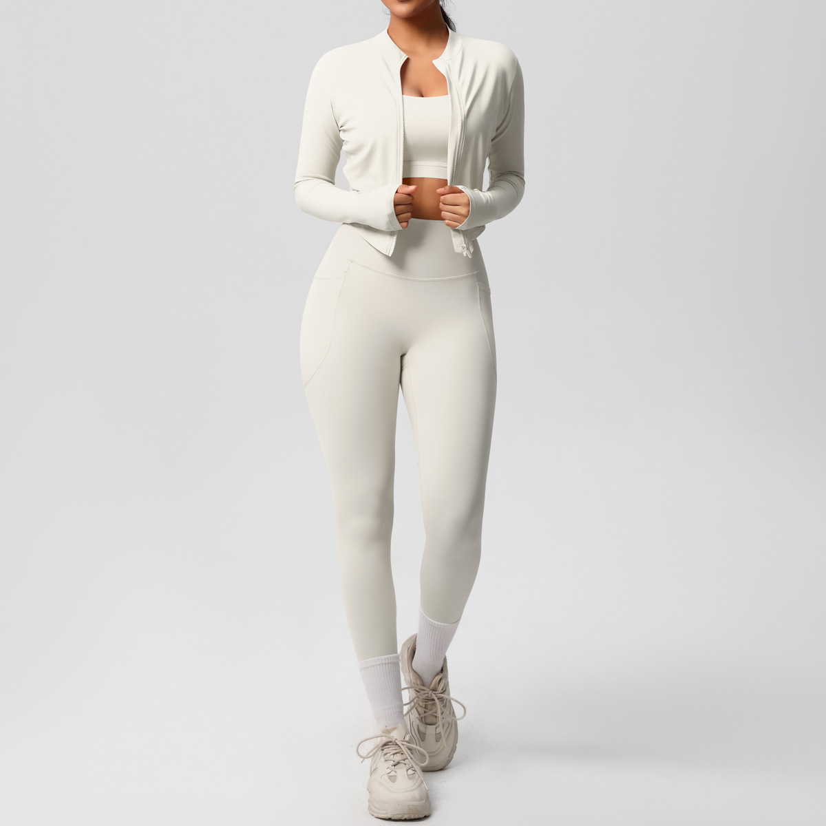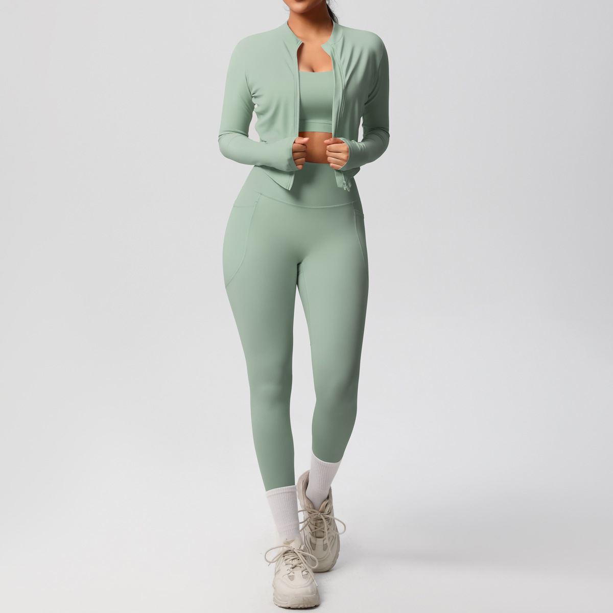 Cross border European and American skin friendly bra sports back pocket yoga pants three piece set running fitness yoga suit set for women