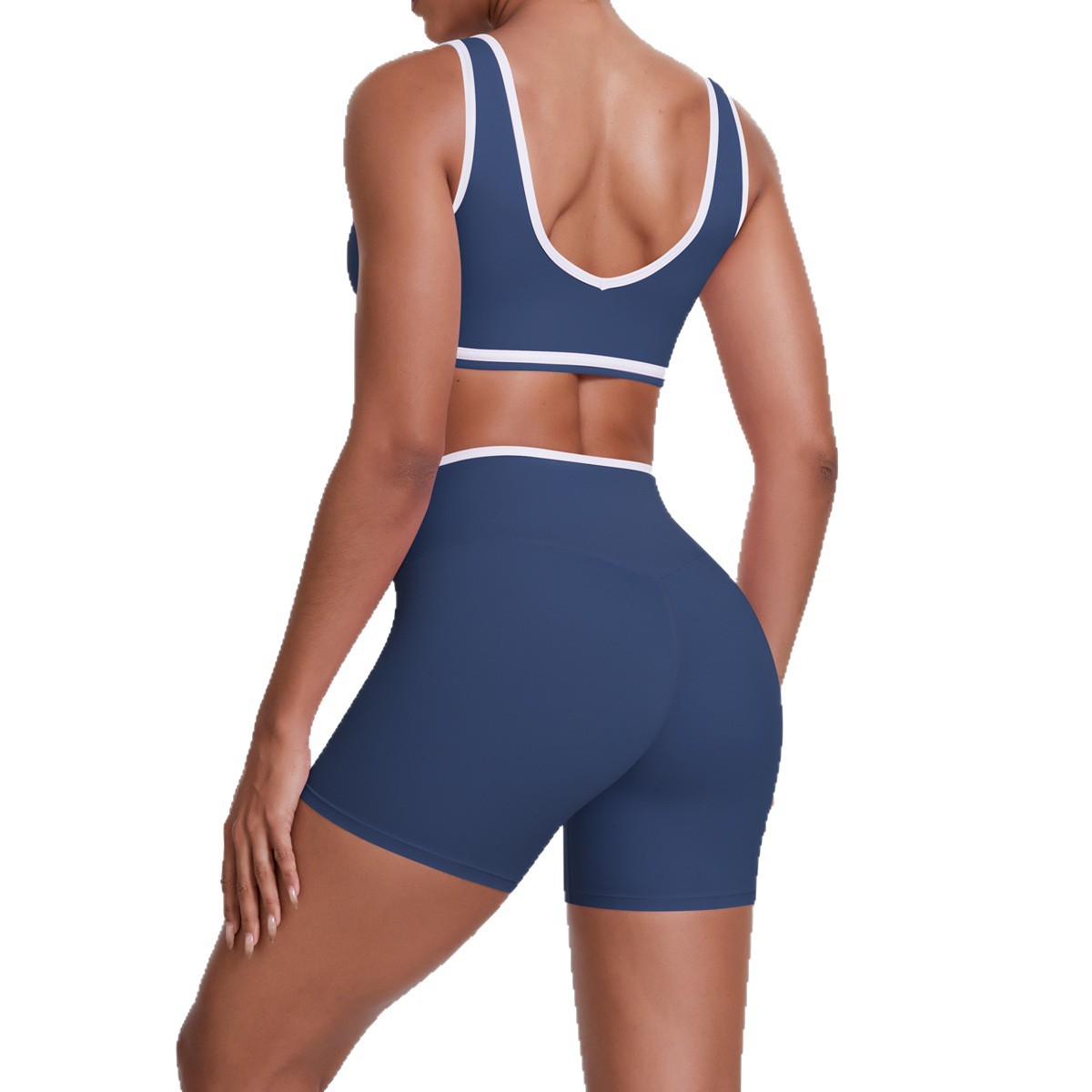 European and American nude contrasting sports bra, tight yoga pants, cross high waist shaping shorts, sports yoga suit for women
