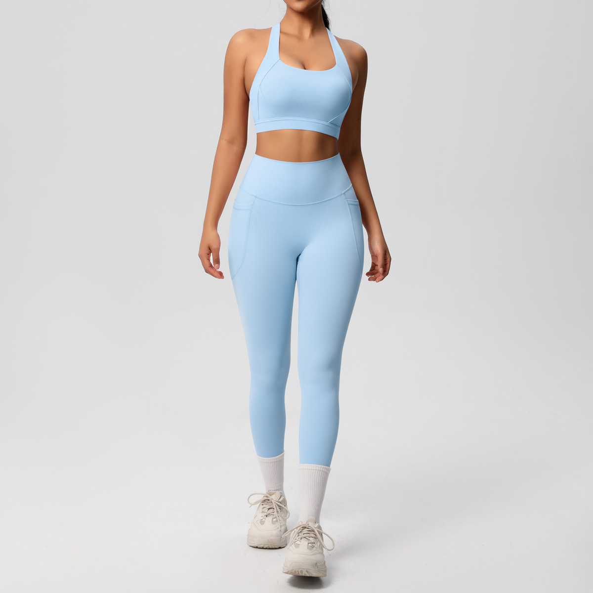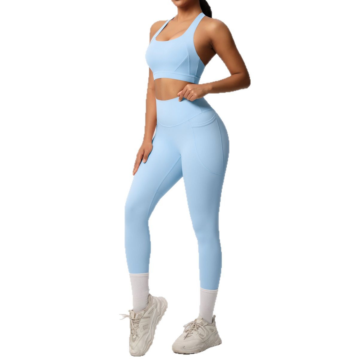 Yoga European and American vest, shockproof high-strength Pilates bra, fitness suit, pocket yoga pants, outdoor exercise set