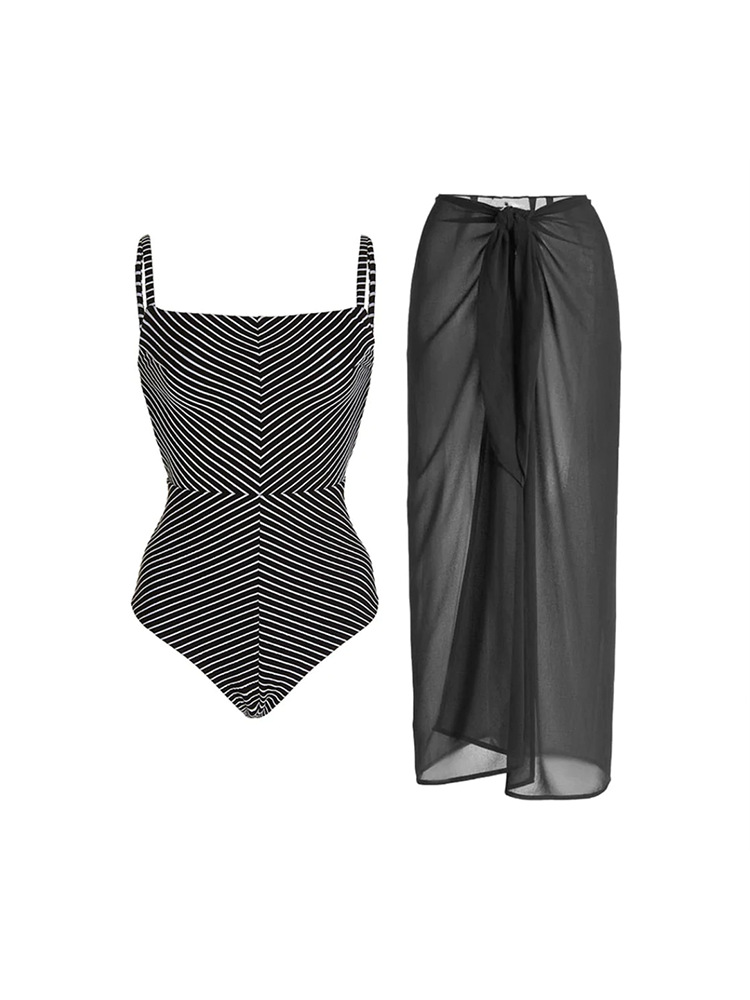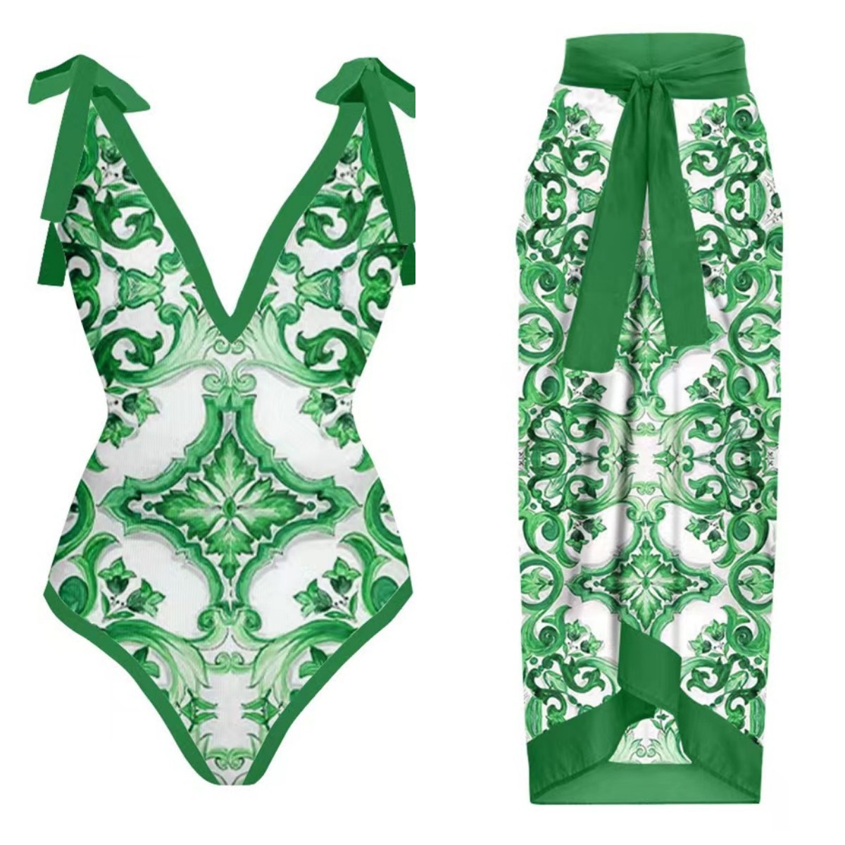 2025 European and American conjoined conservative belly covering slimming vacation beach hot spring swimsuit French retro conjoined bikini