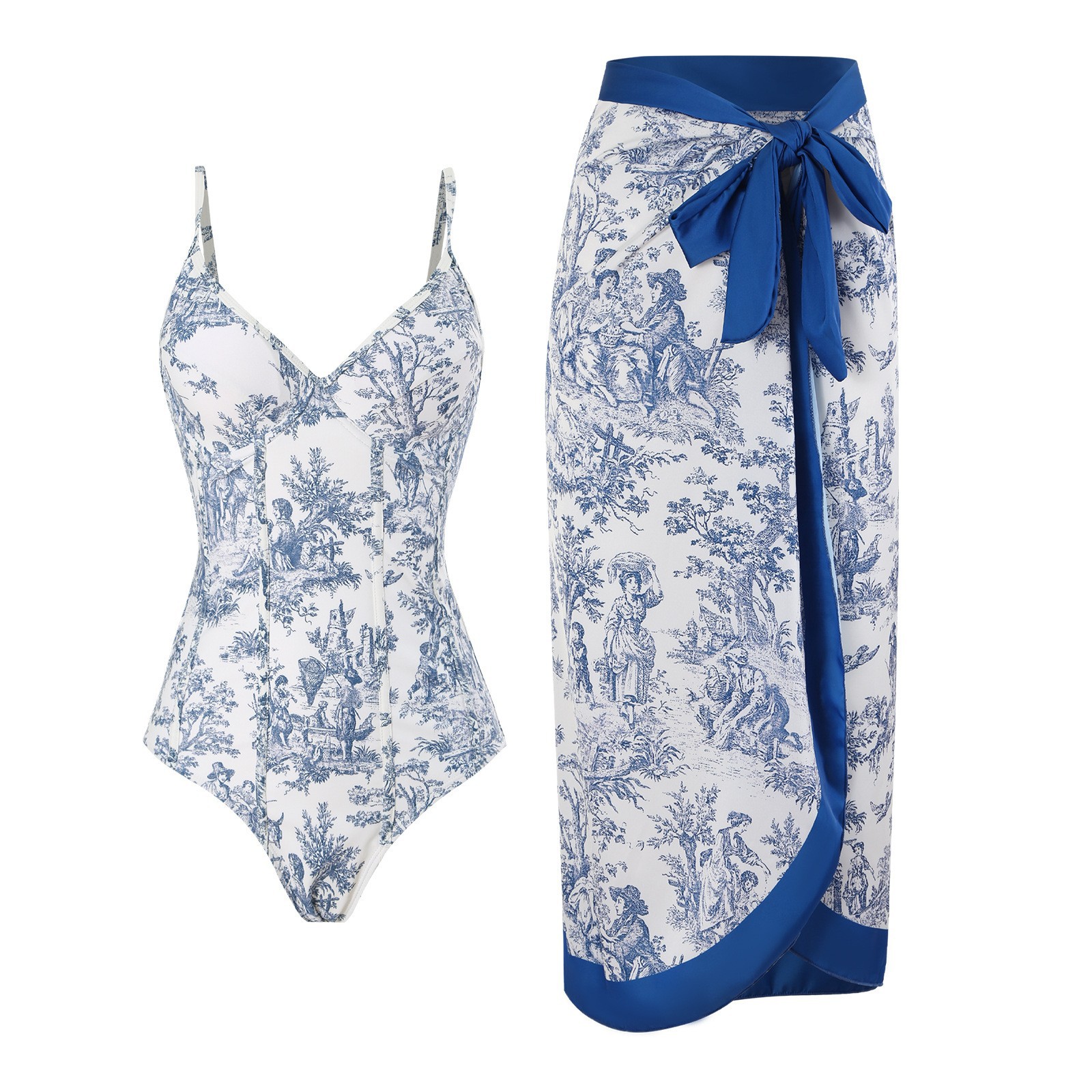 2024 European and American conjoined conservative belly covering slimming vacation beach hot spring swimsuit French retro conjoined bikini