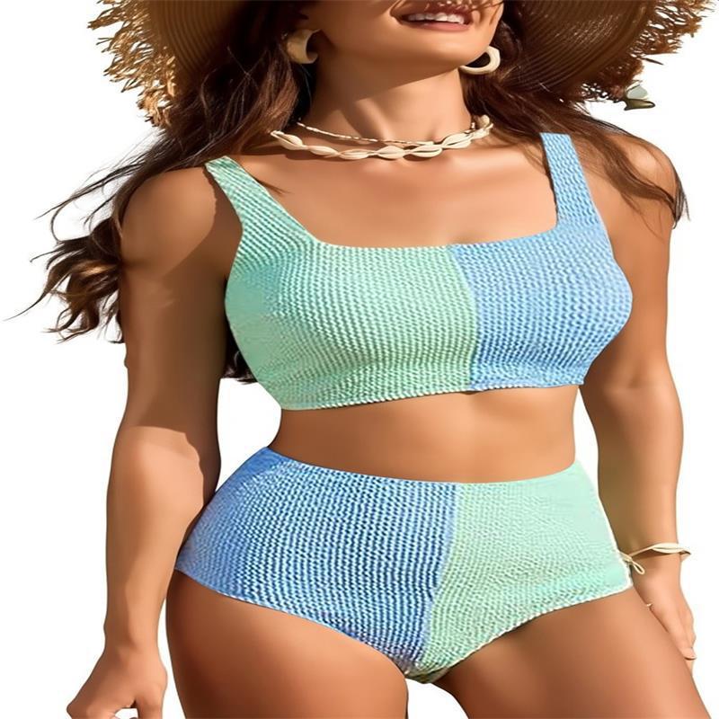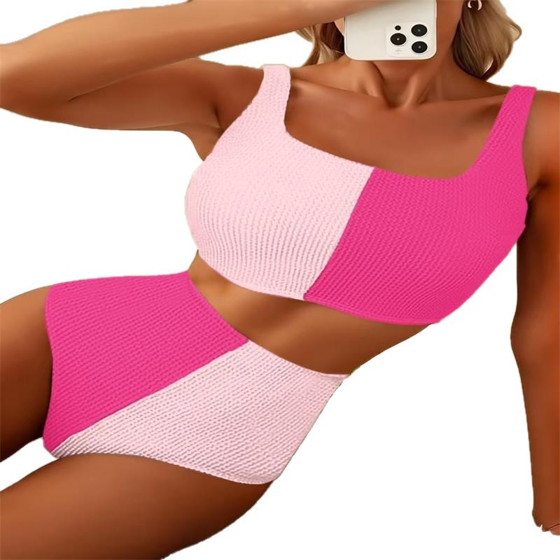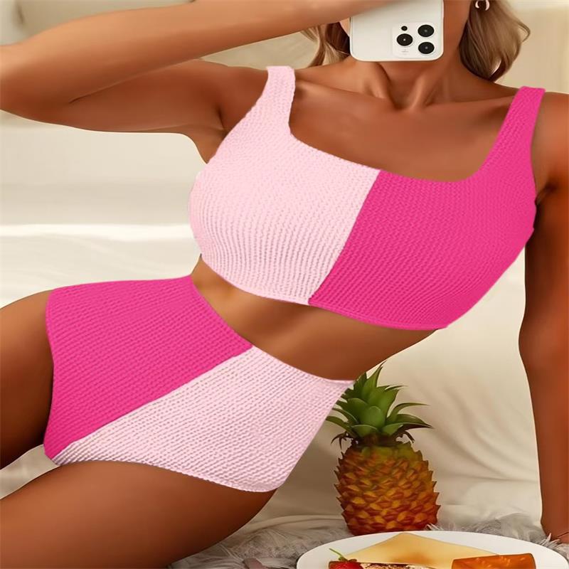 2025 Foreign Trade Bikini AliExpress Sexy European and American Swimsuit Amazon Color Match Personalized High Waist Bikini