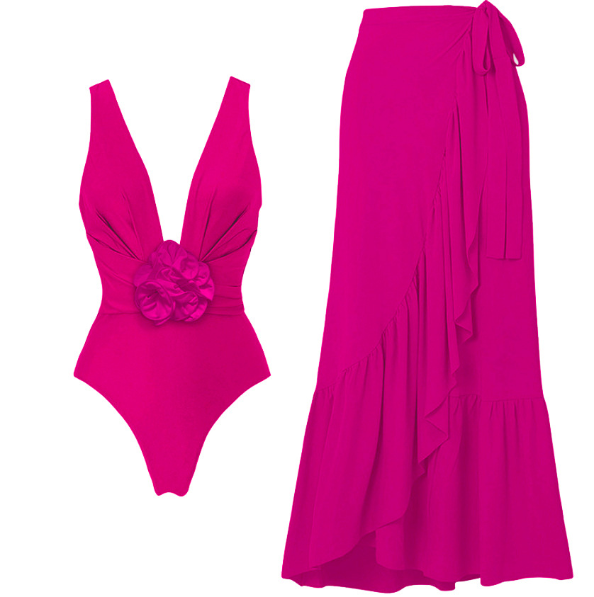 European and American new retro solid color one-piece swimsuit for women, Amazon hot selling and explosive big flower swimsuit factory wholesale in stock