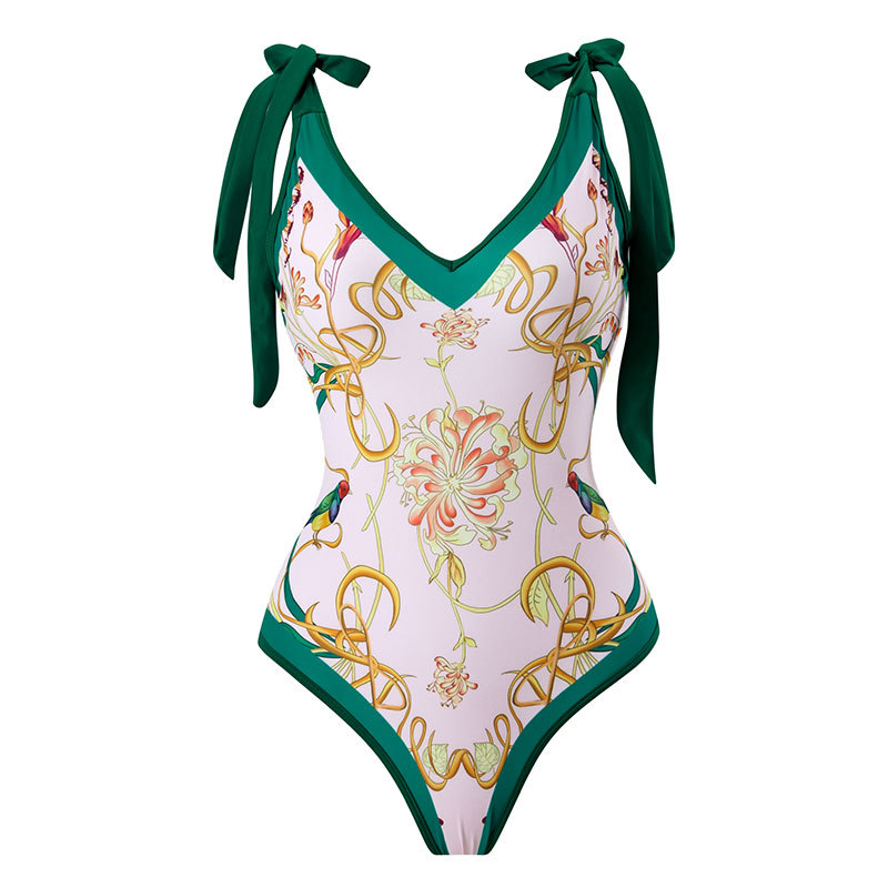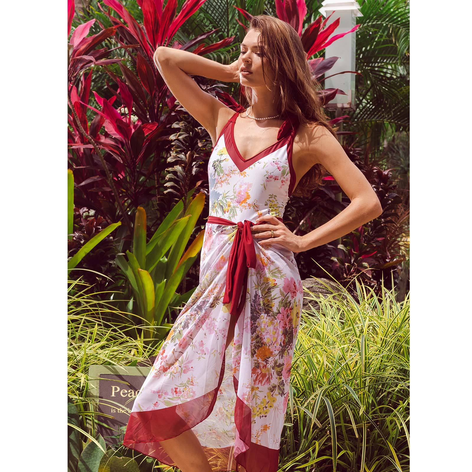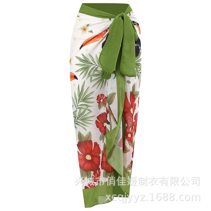 European and American vacation new one-piece swimsuit women's tight fitting slimming retro foreign trade strap swimsuit set chiffon long skirt