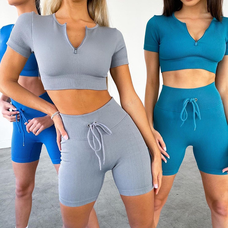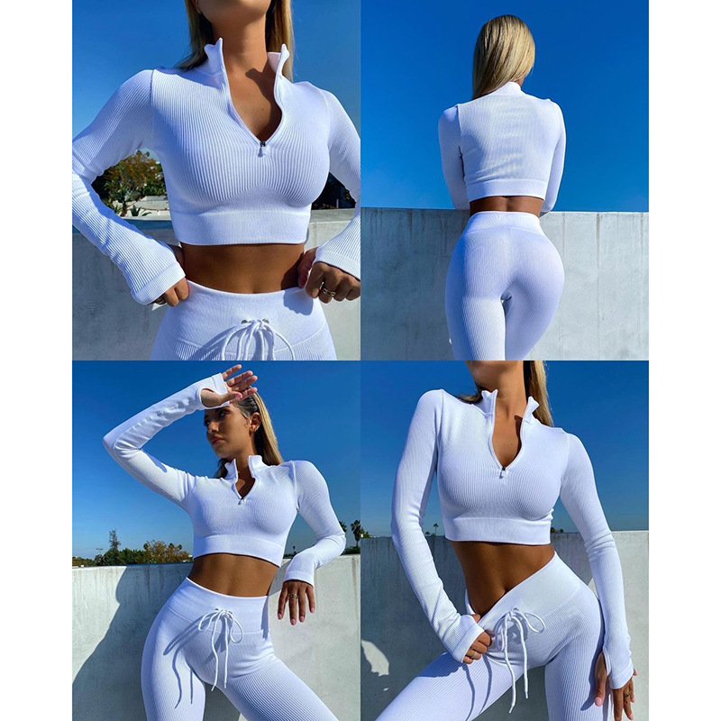 Cross border new seamless yoga suit autumn and winter zipper tight long sleeved lifting waist drawstring fitness pants yoga suit set