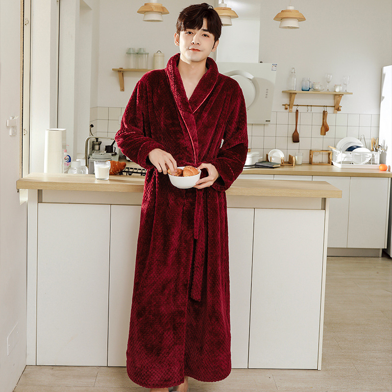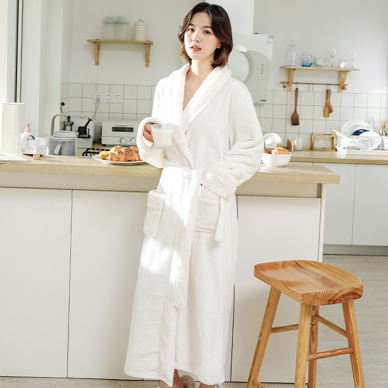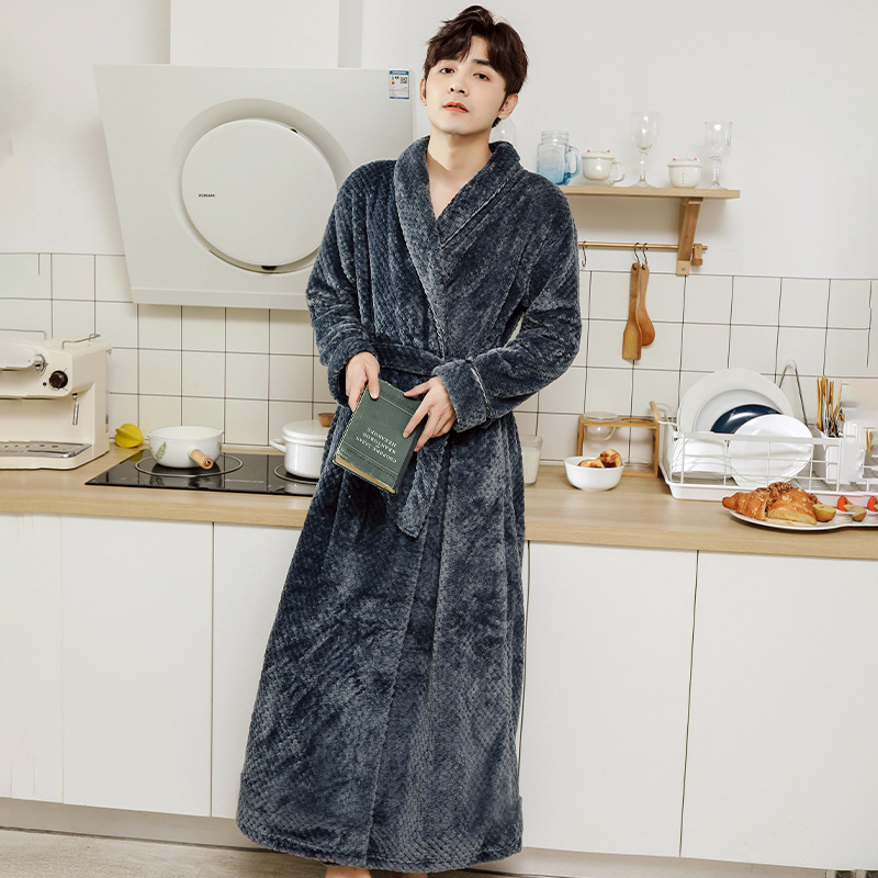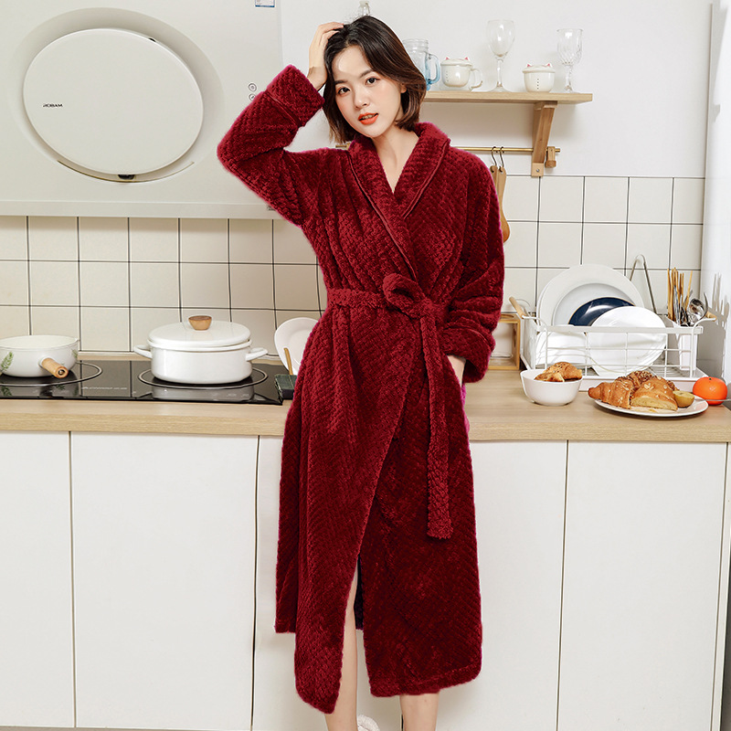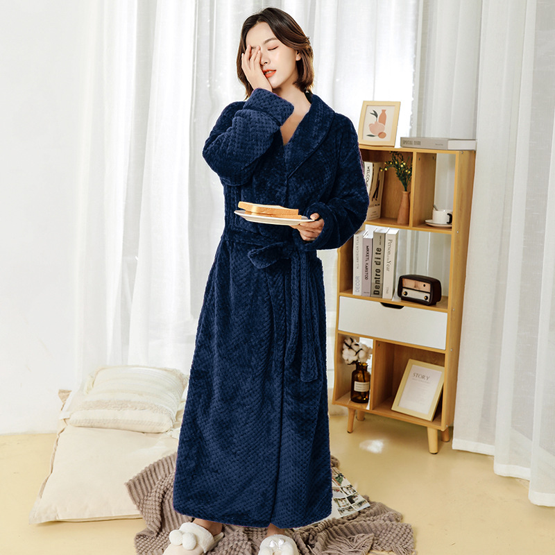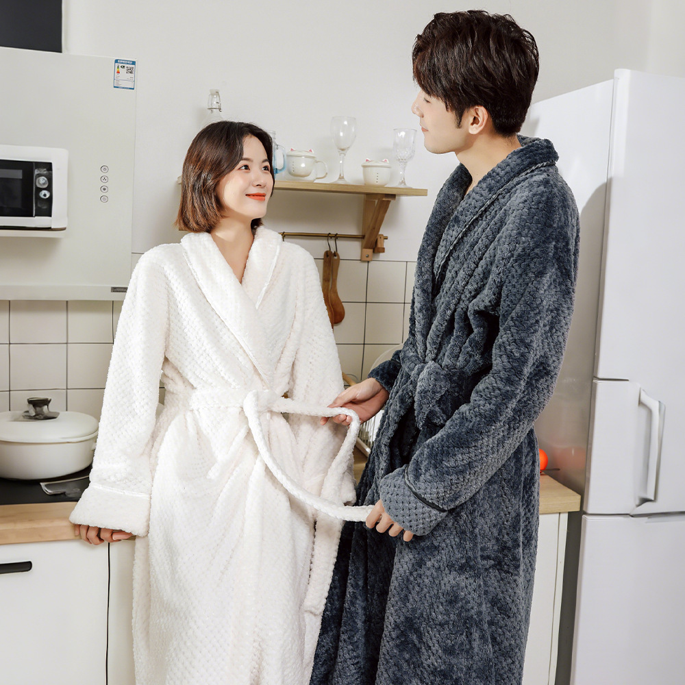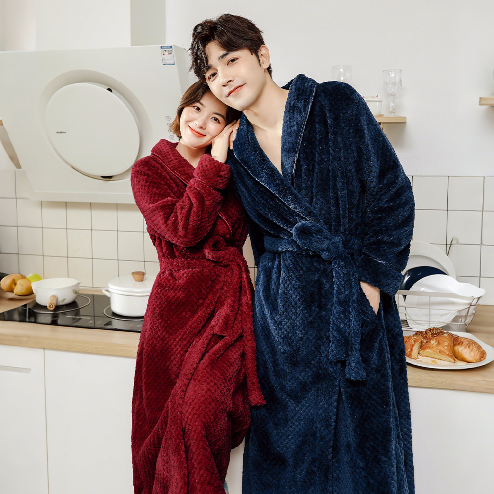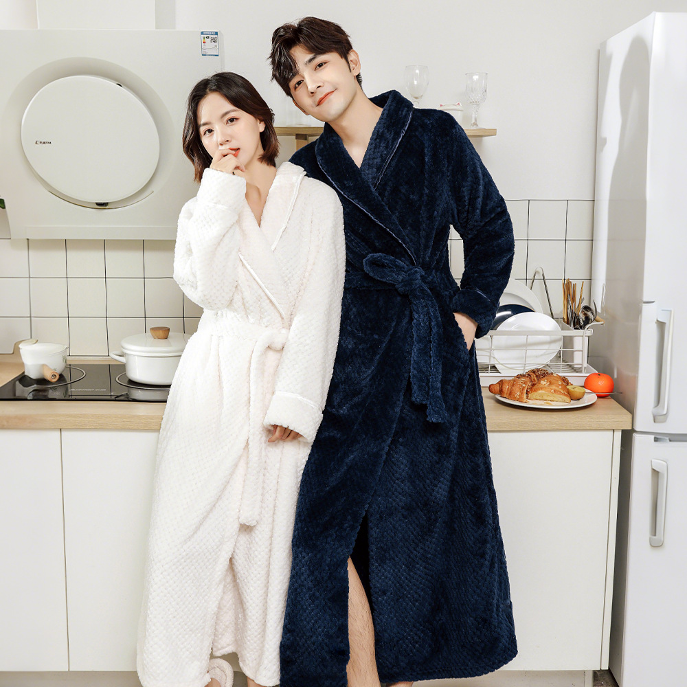Women's Winter Couple Thick and Extended Flannel Pajamas Bathrobe Men's Coral Velvet Warm Home Clothes