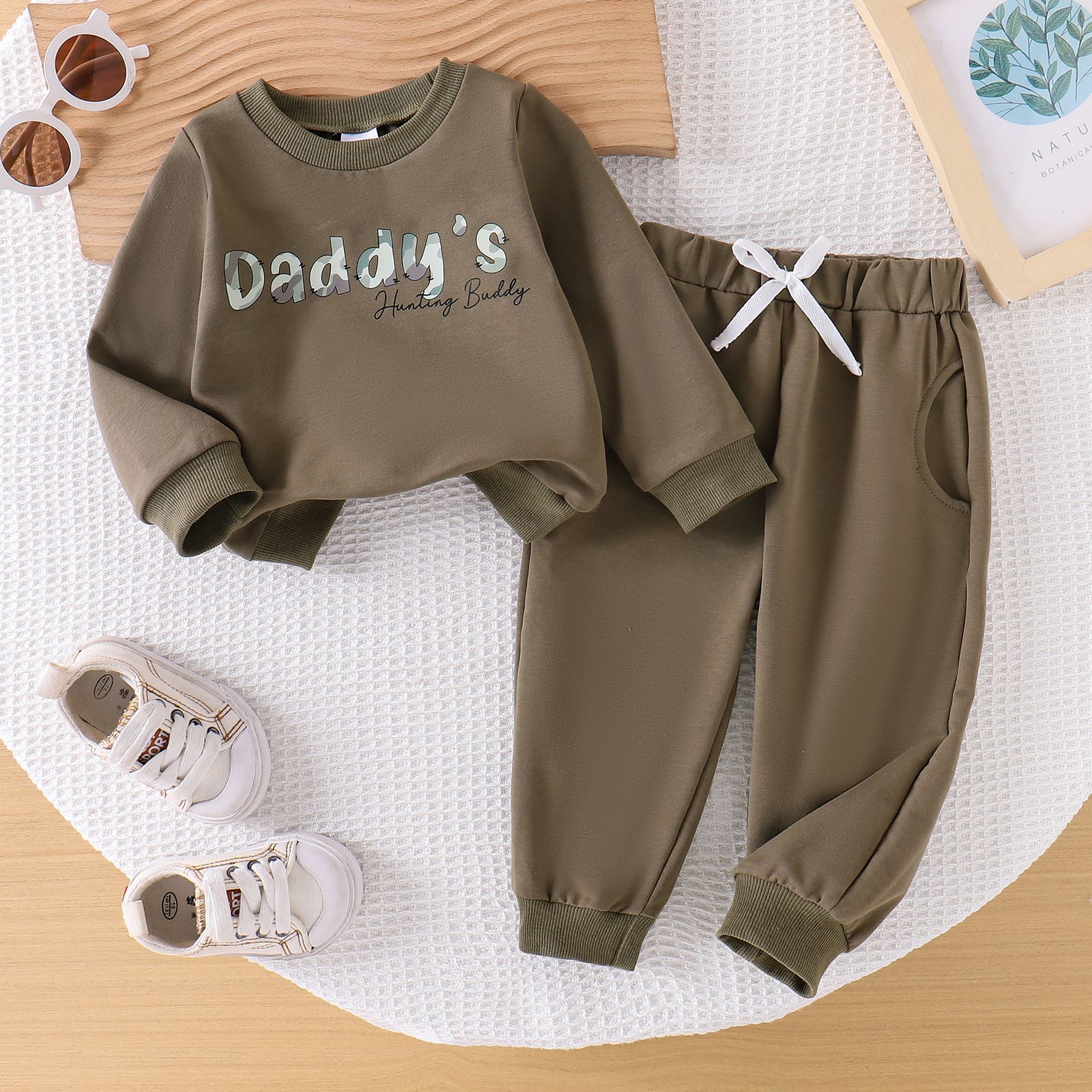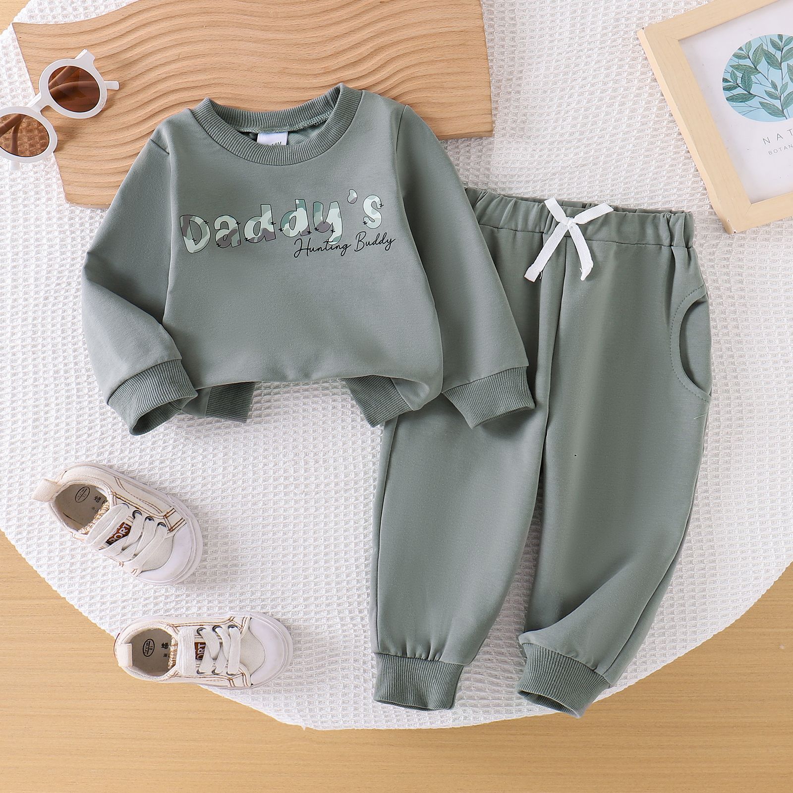 Foreign trade European and American children's clothing, casual boys' and babies' letter printed long sleeved hoodie and pants two-piece set