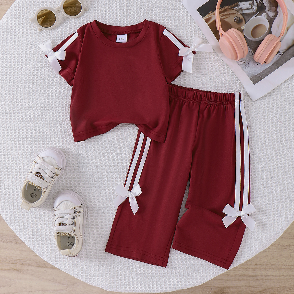 Foreign trade children's clothing girls summer pullover short sleeved top T-shirt long pants two-piece set