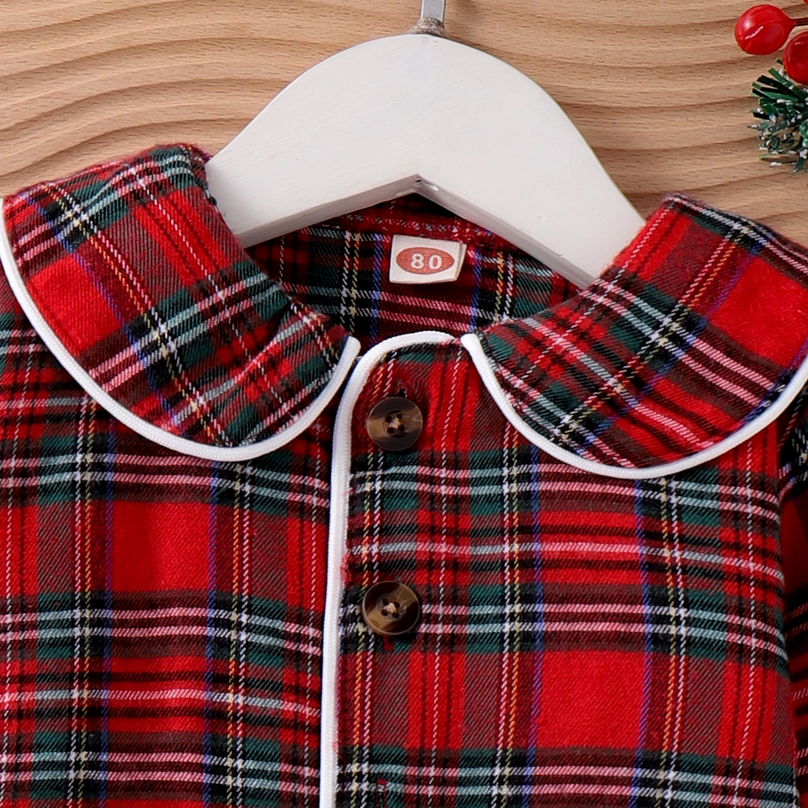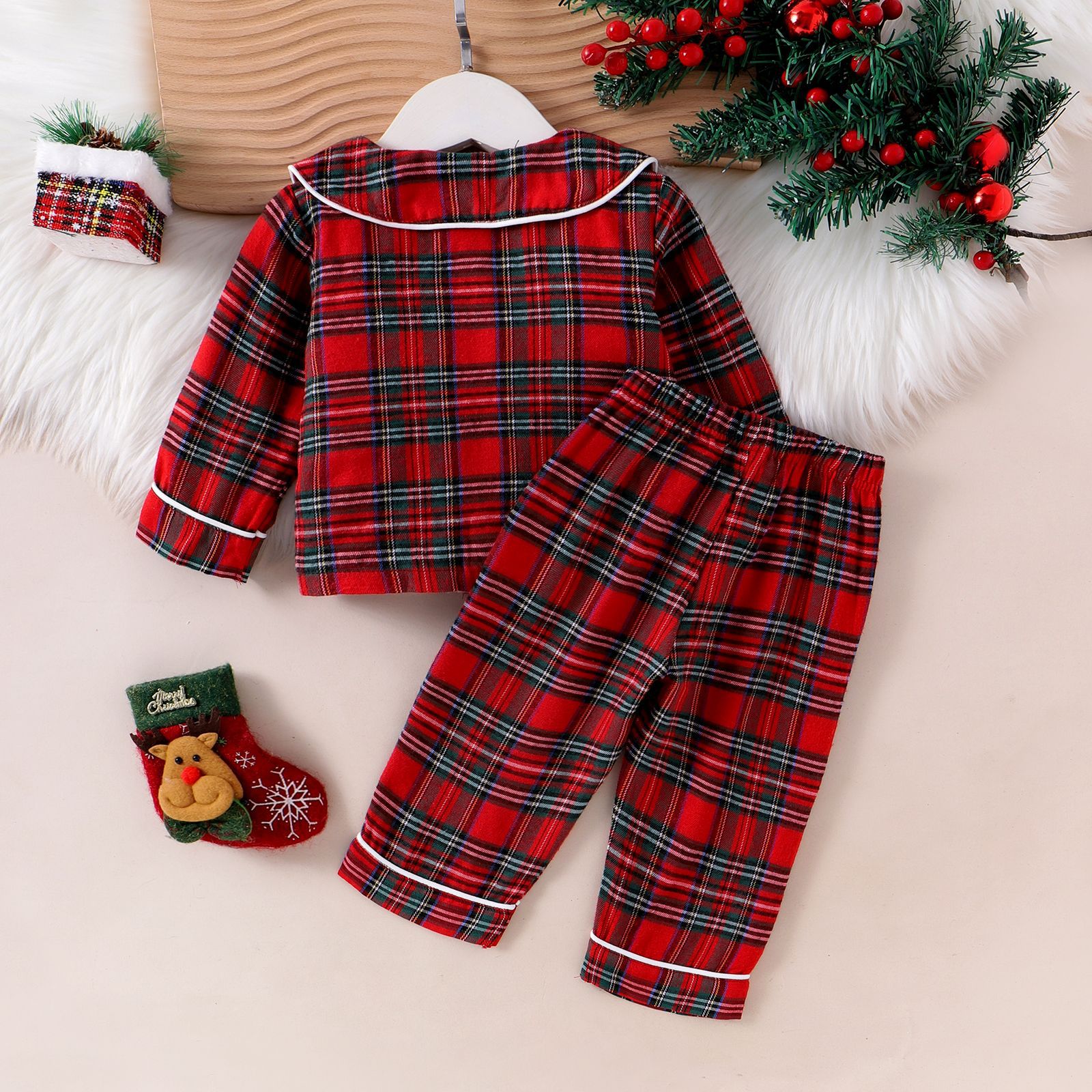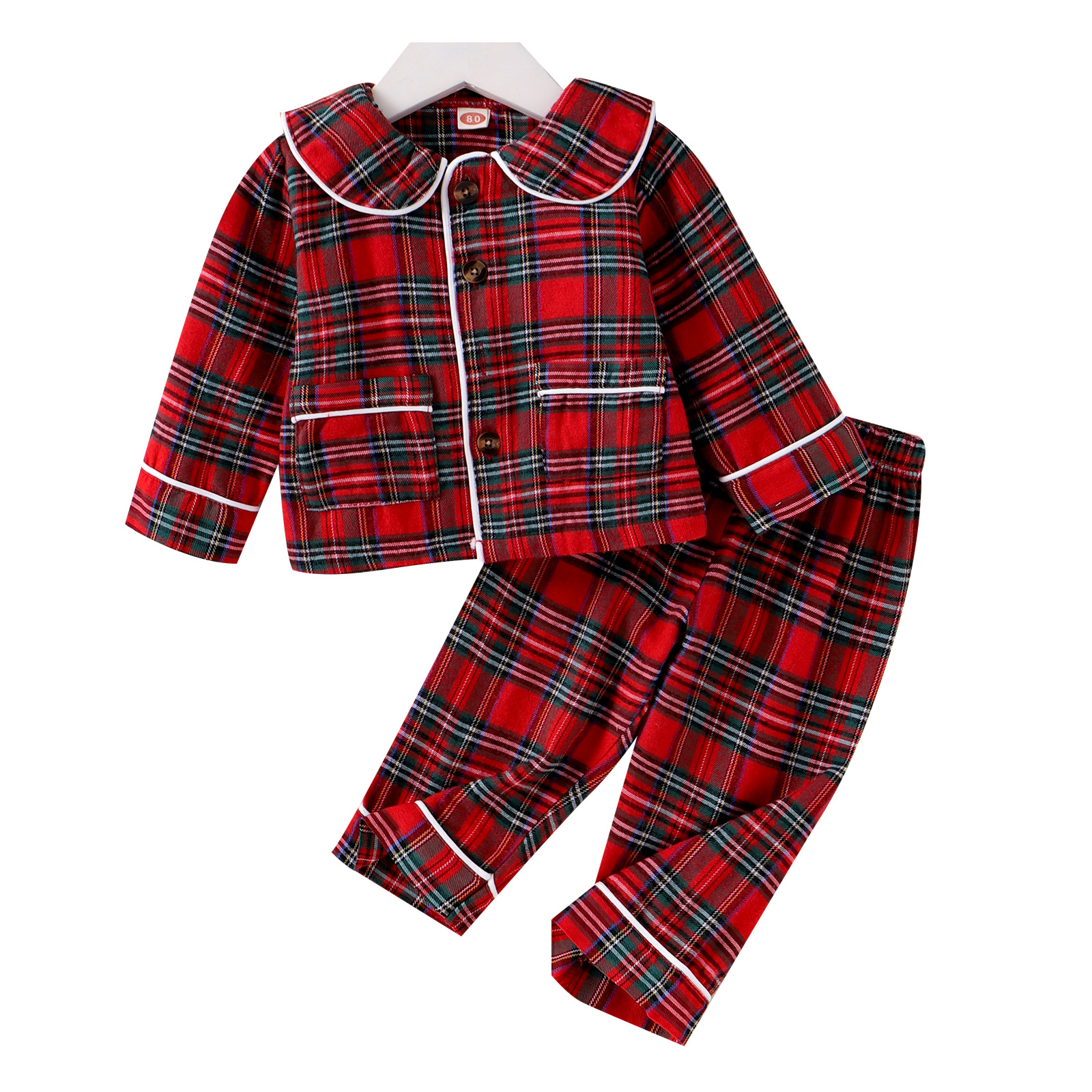 Foreign trade European and American boy and girl baby autumn and winter red checkered top straight leg pants set pajamas two-piece set
