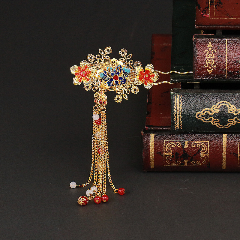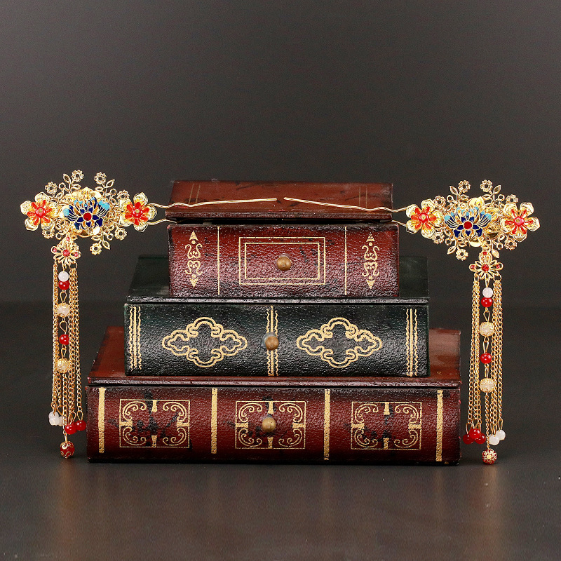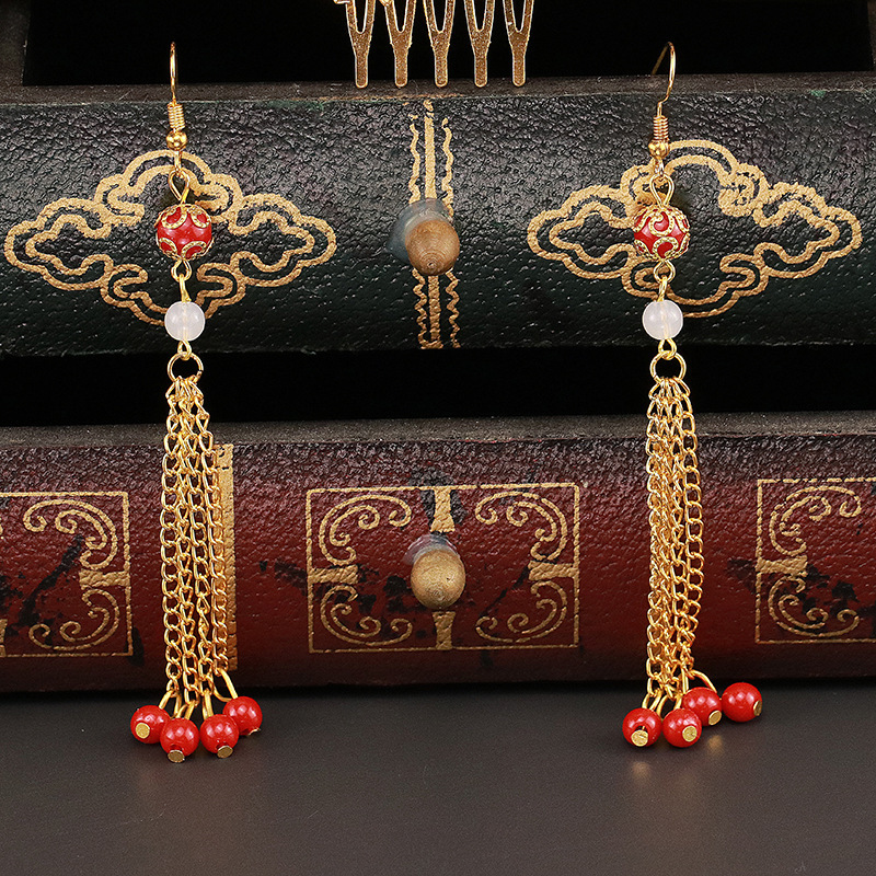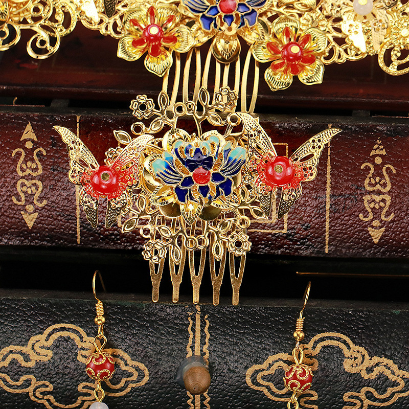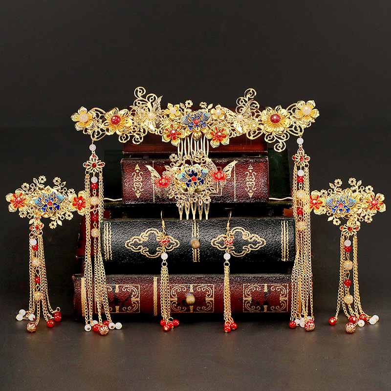2024 Bridal Costume Headwear Chinese Wedding Gold Hair Bracelet Set with tassel Step Shake Crown Style Show off Clothes