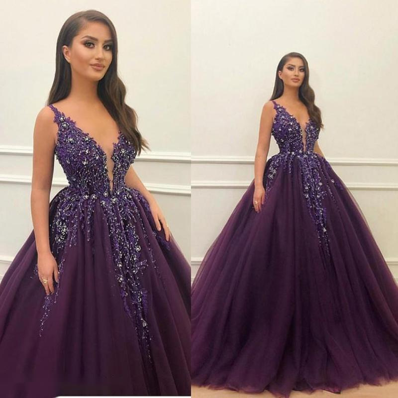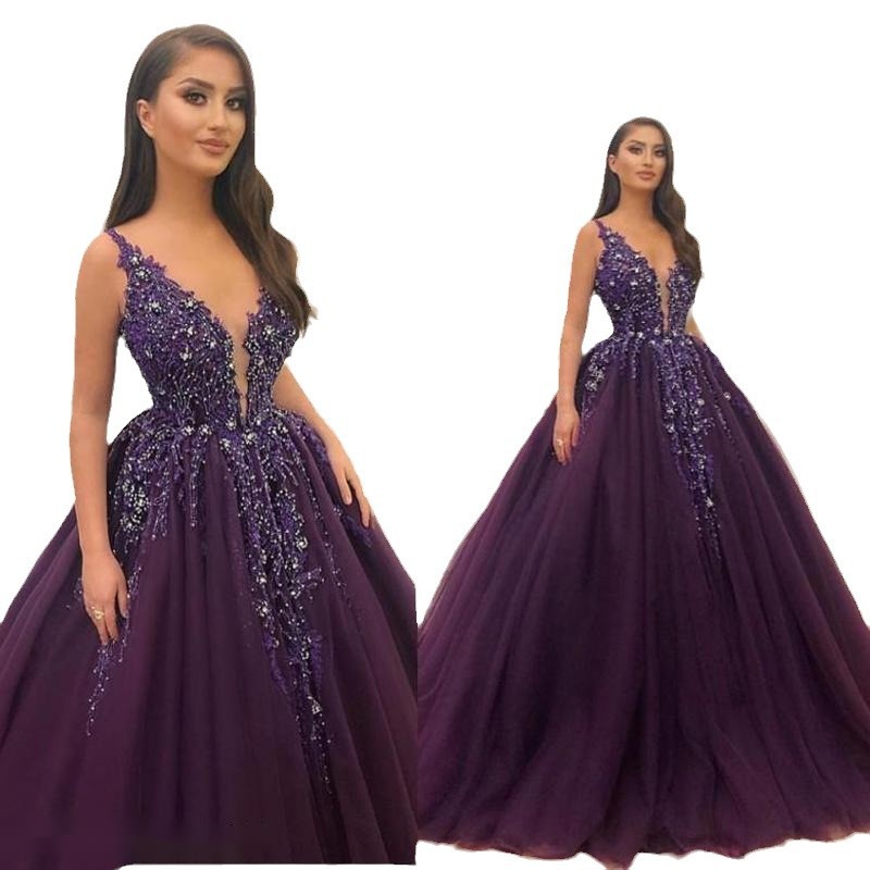 Grape Purple Ball Dress with Stickers Beads, Long Evening Dress for Girls, Special Occasion, Adult Ceremony, Queue Performance, Annual Meeting Ceremony