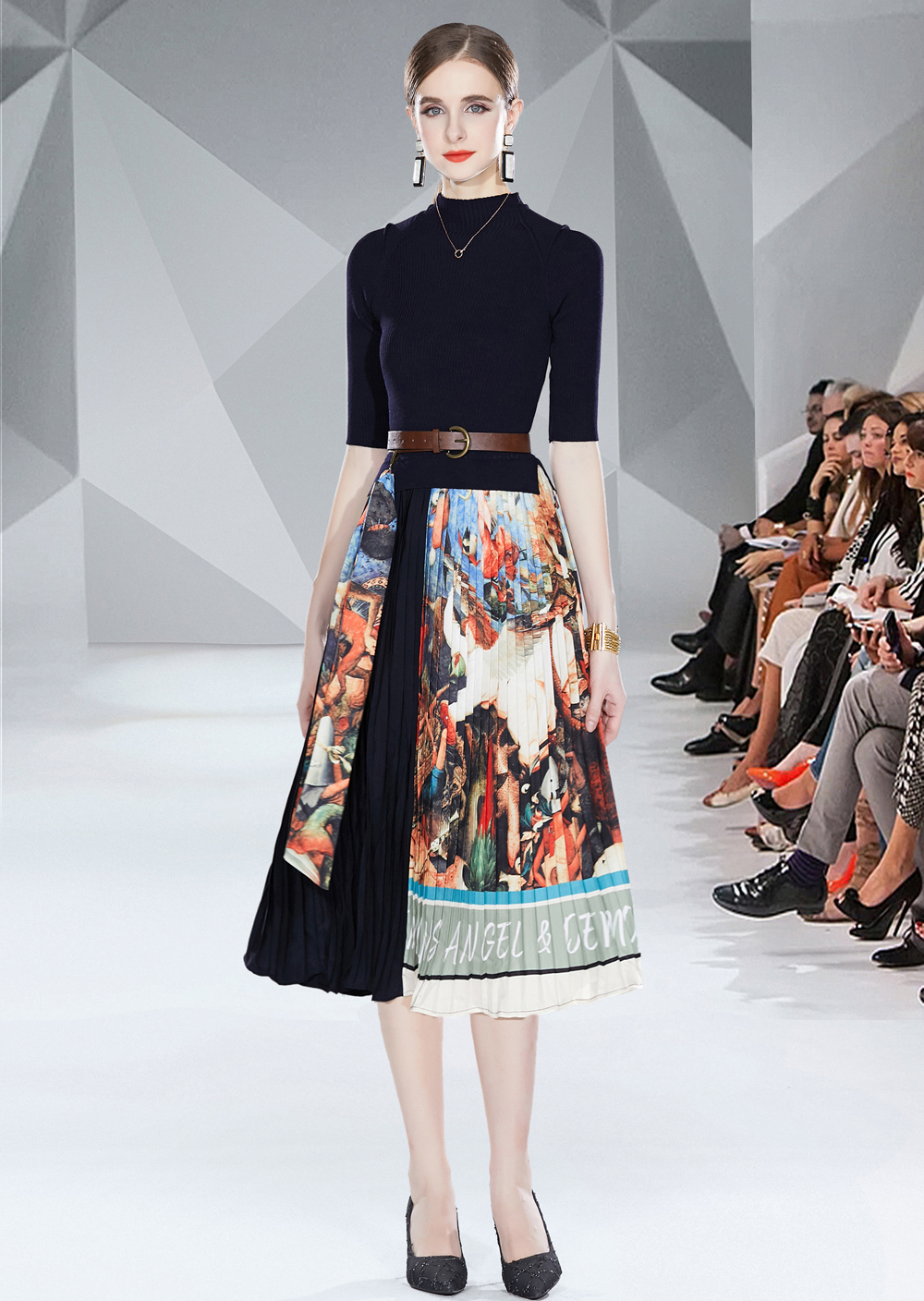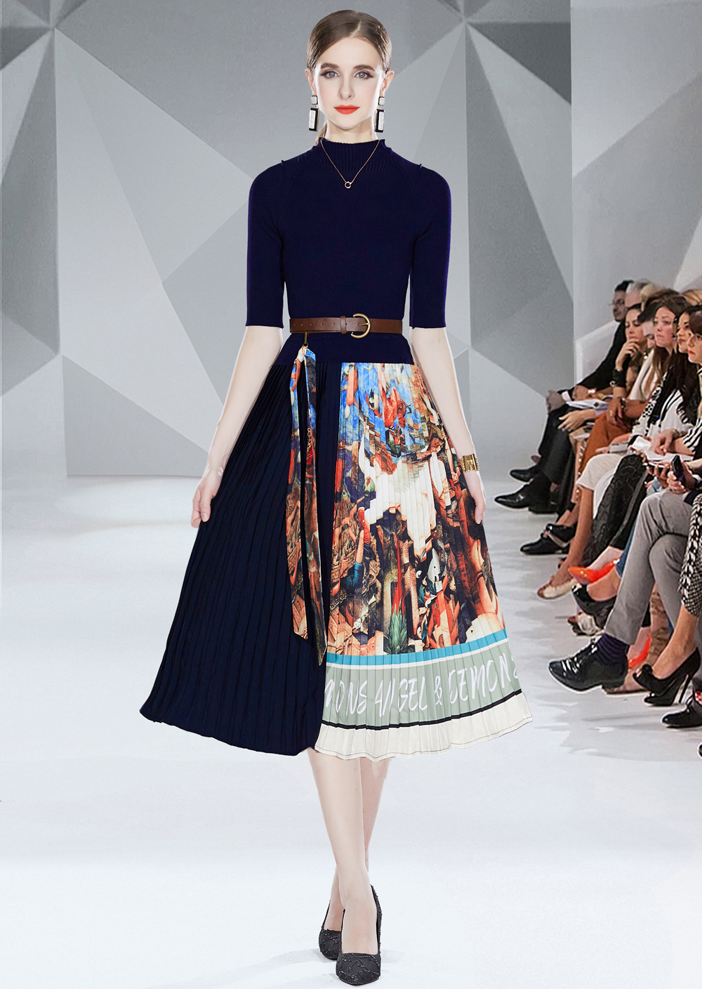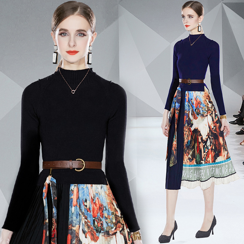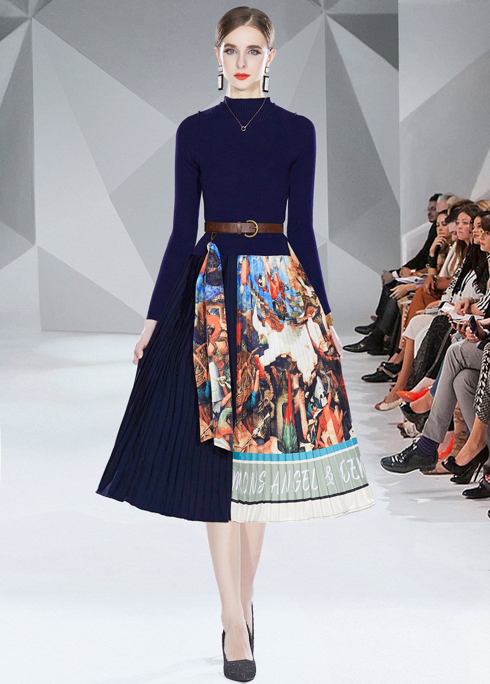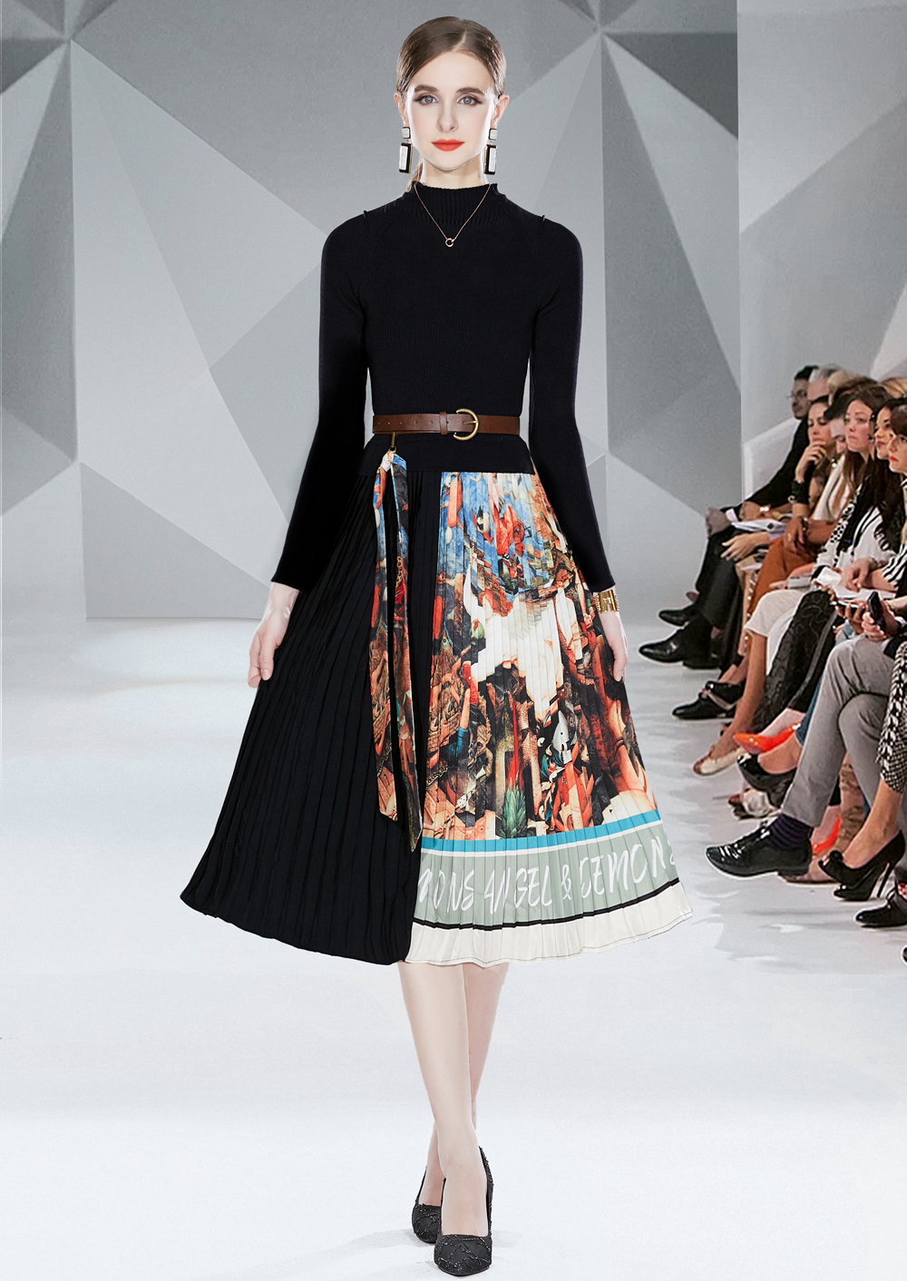Realistic photo of slim fit lace up small fragrant style long sleeved high waisted pleated knitted dress on special offer